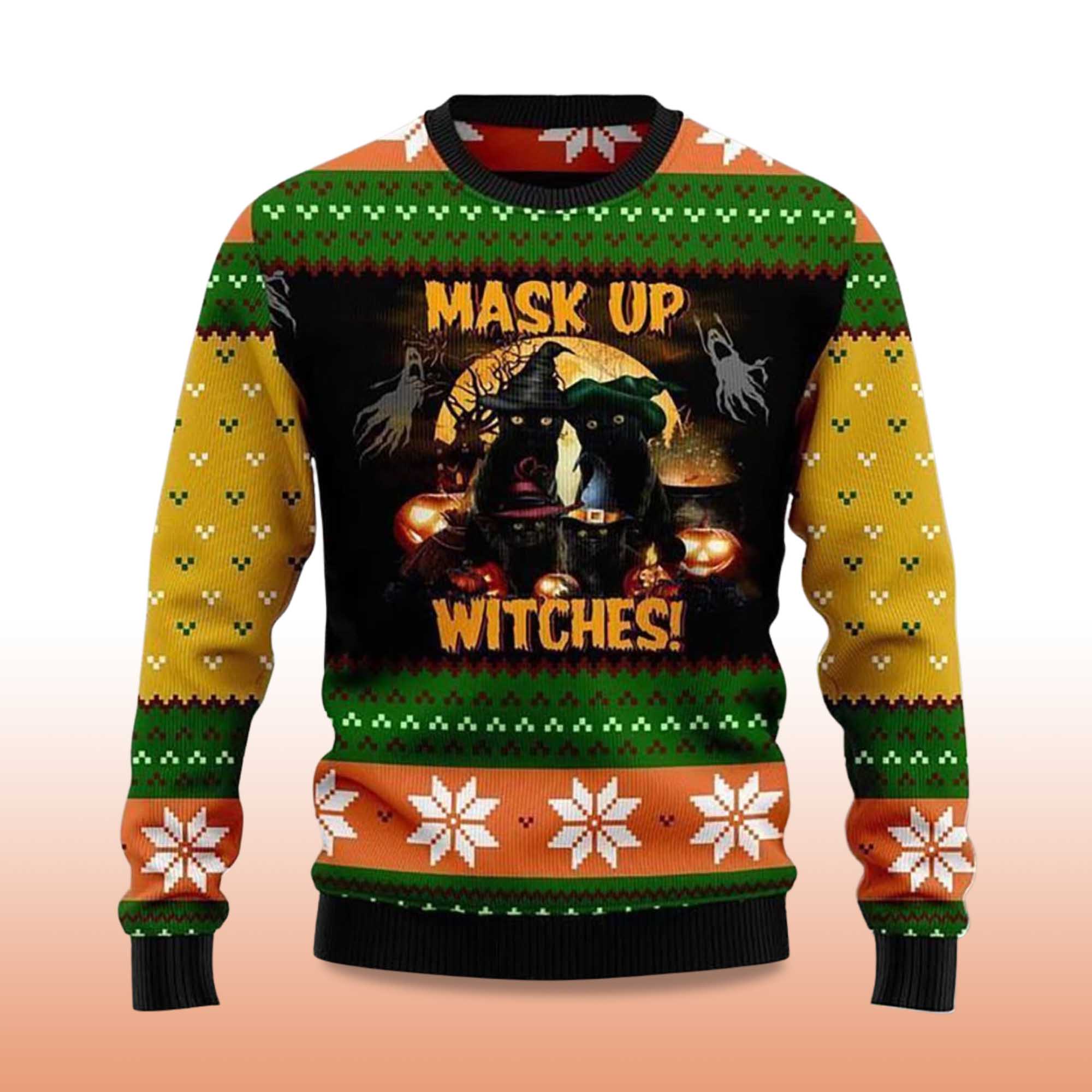 2025 Black Cat Mask up Witches Ugly Christmas Sweater