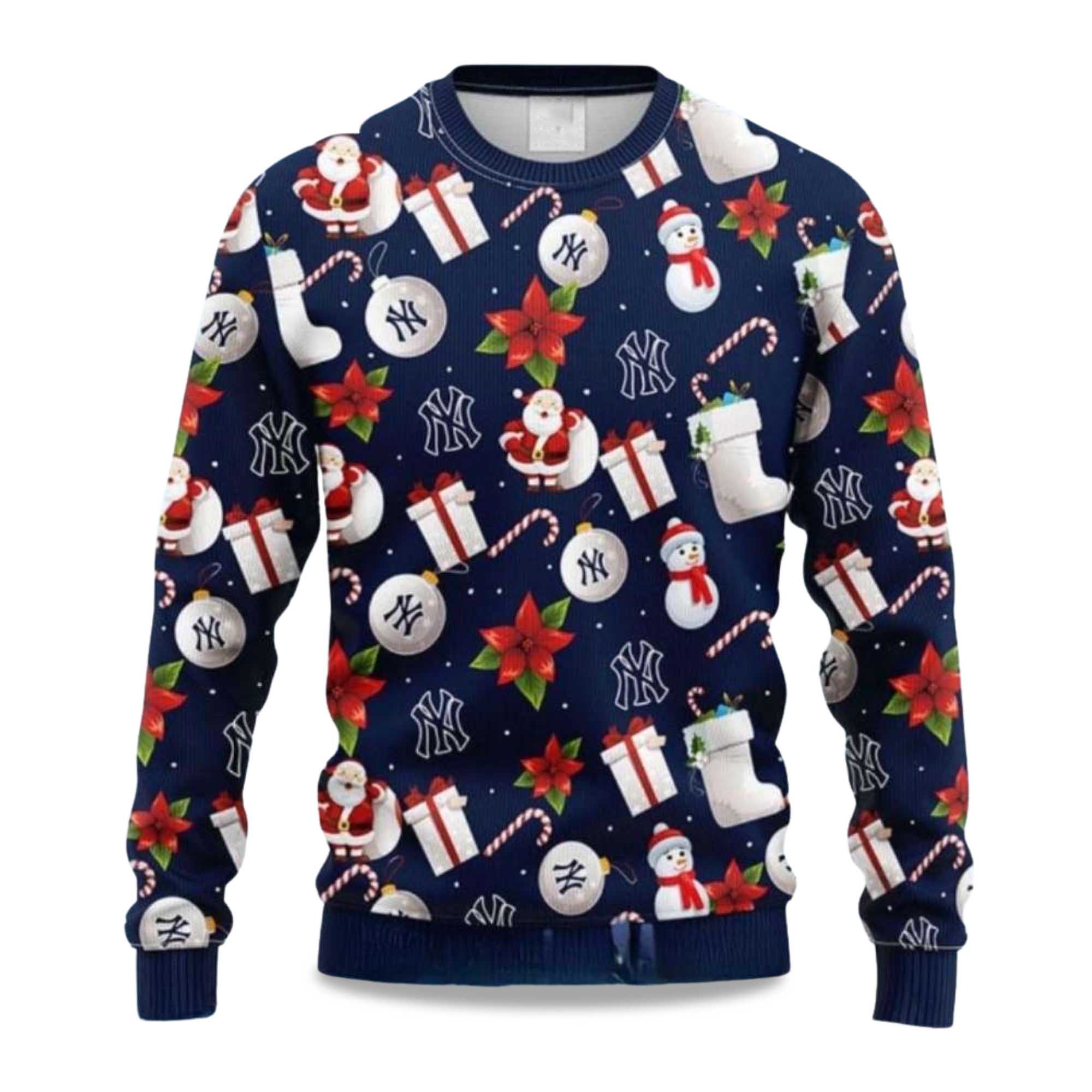 2025 Festive Yankees Christmas Santa And Ornaments Ugly Sweater