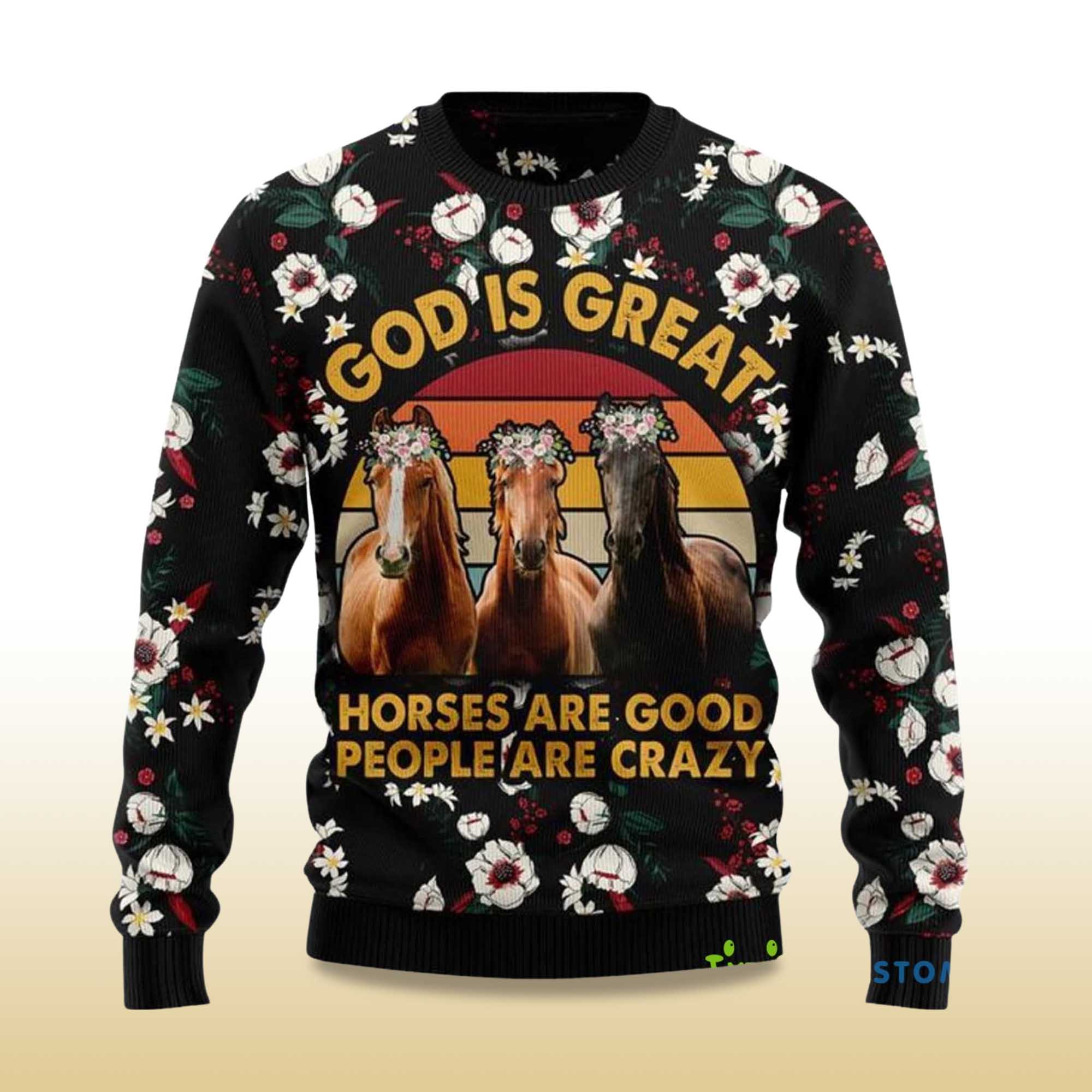 2025 God is Great Horses Are Good People Are Crazy Ugly Christmas Sweater