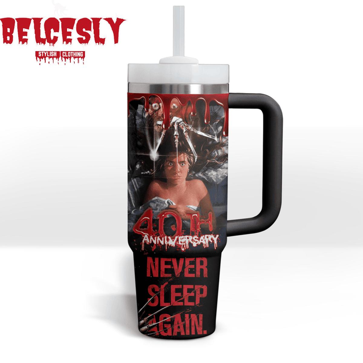 Celebrate 40 years of horror with this iconic tumbler. Perfect for fans and collectors, featuring vibrant, chilling artwork. Stay refreshed and spooked!