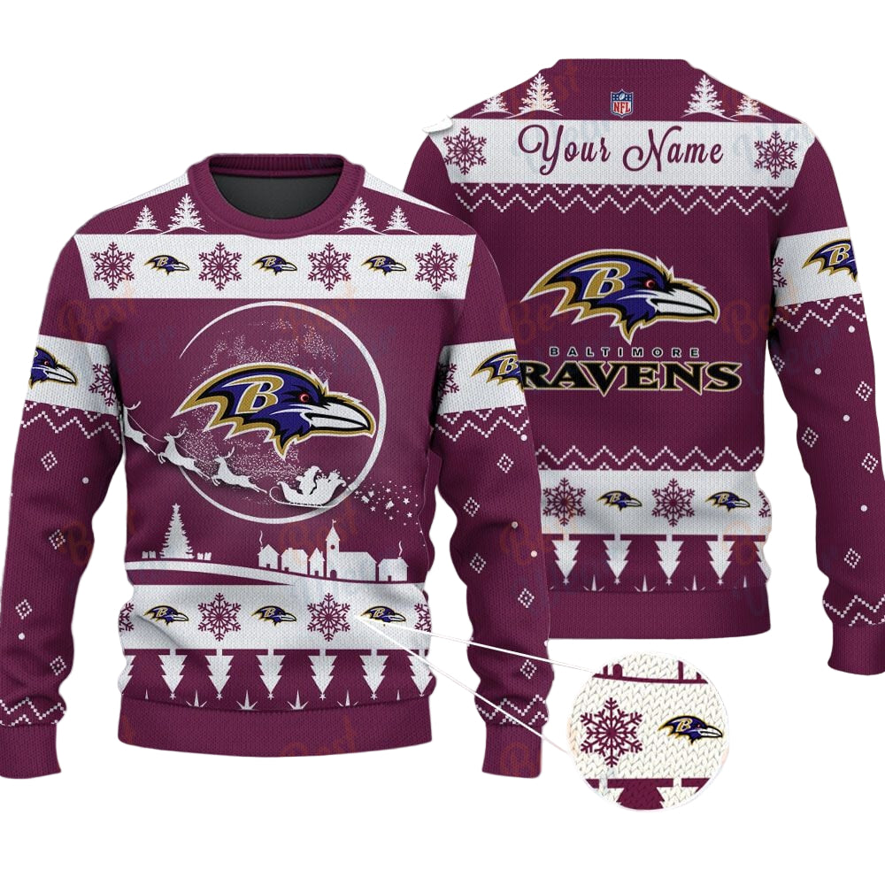 Baltimore Ravens NFL Ugly Christmas Sweater – Name Customized