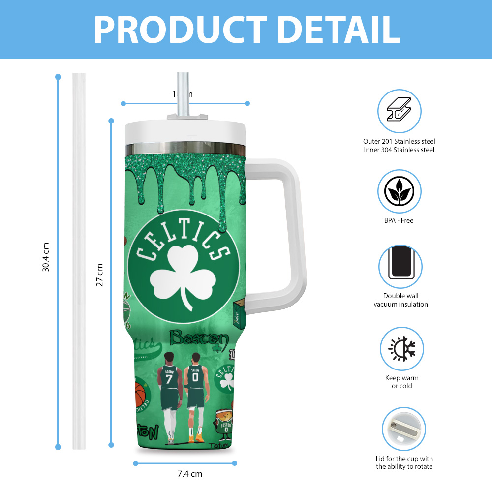 Show off your team spirit with this vibrant Boston Celtics tumbler mug. Perfect for keeping your drinks hot or cold while cheering for your favorite team.