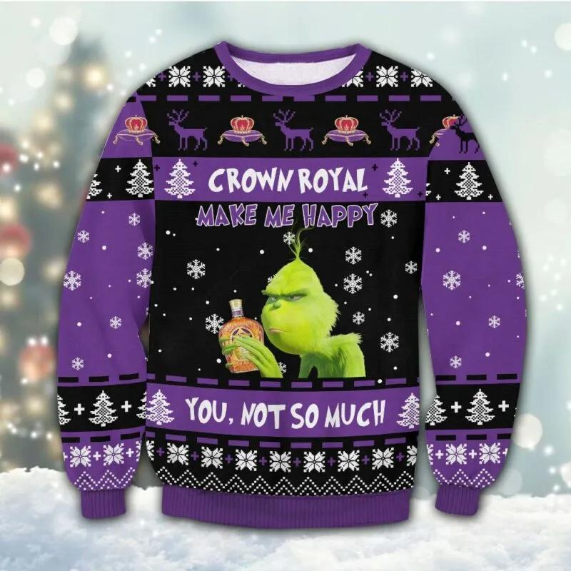 Crown Royal Grinch Happy Ugly Christmas Sweater, Grinch Holiday Sweater – Gowgowstore.com