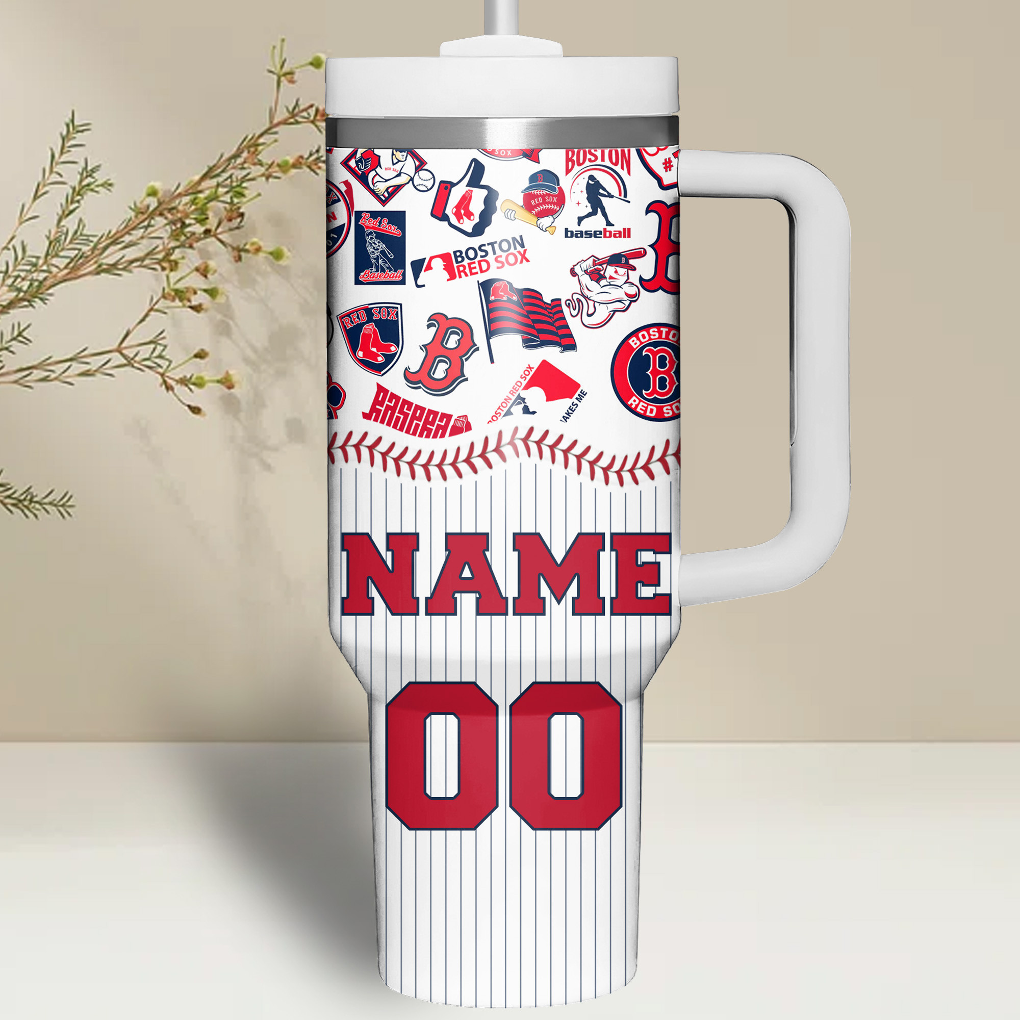 Show your team pride with this custom Boston Red Sox tumbler. Personalize it with your name and number for the ultimate fan experience.