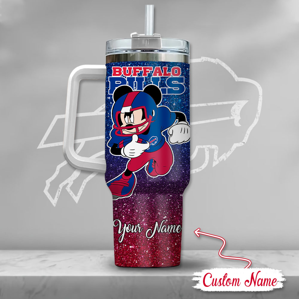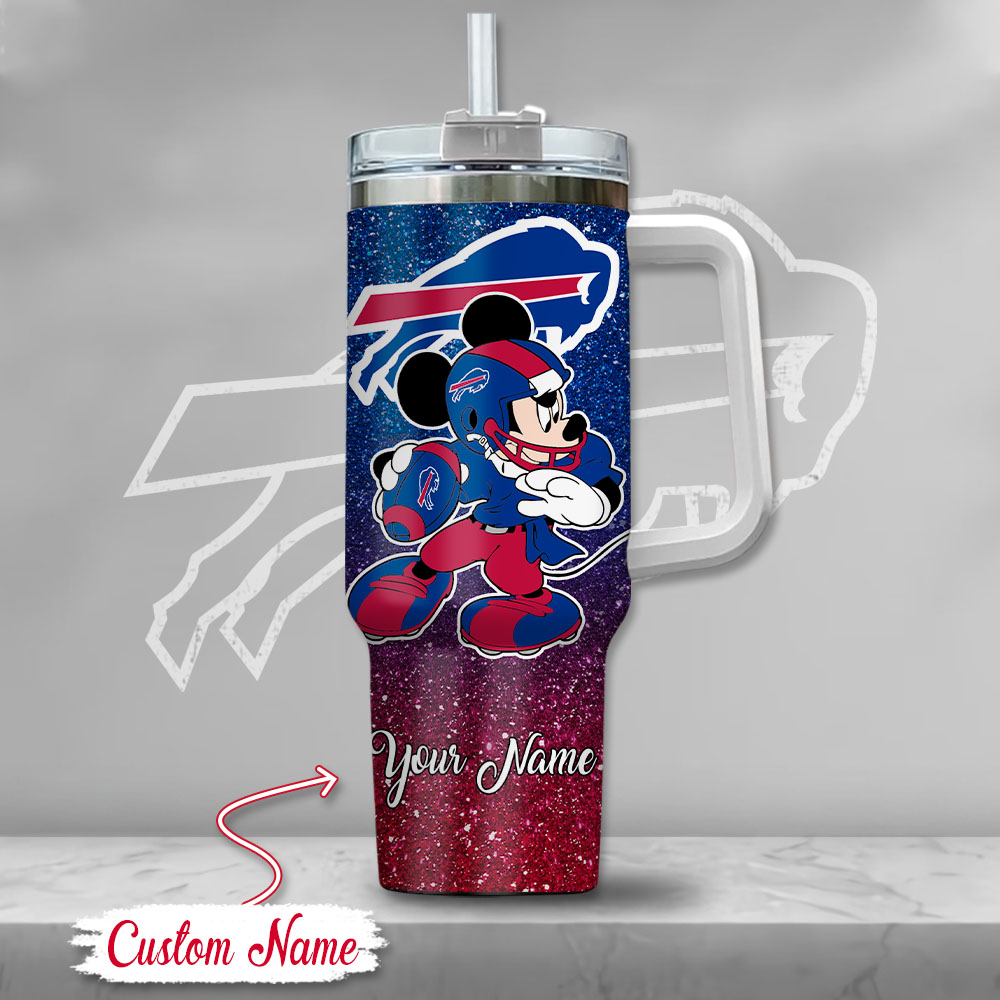 Show off your team spirit with this custom Buffalo football fan tumbler featuring Mickey. Perfect for keeping your drinks hot or cold on game day!