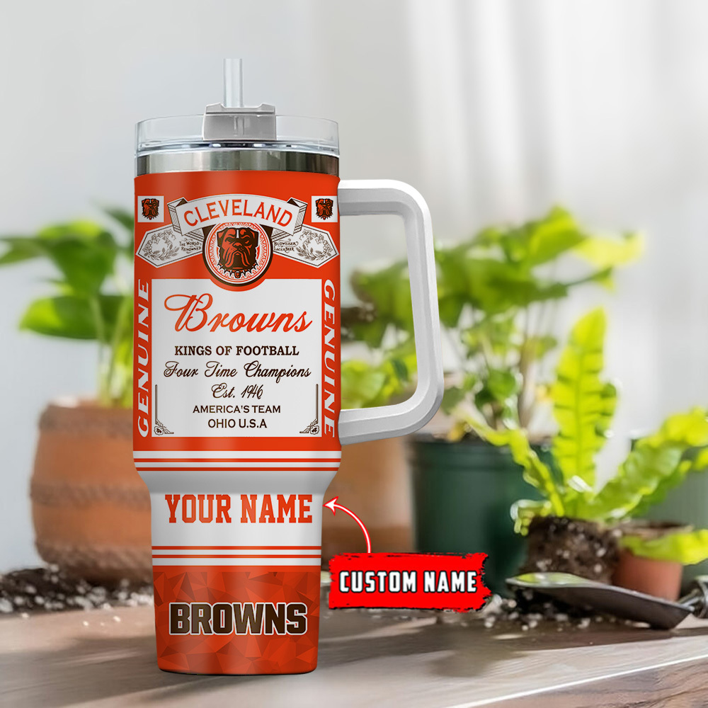 Show off your team spirit with this custom Cleveland Browns tumbler. Personalize it with your name for the perfect fan gift!