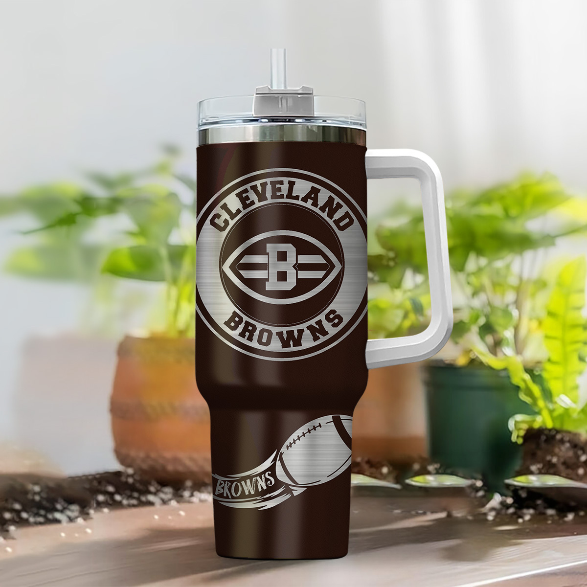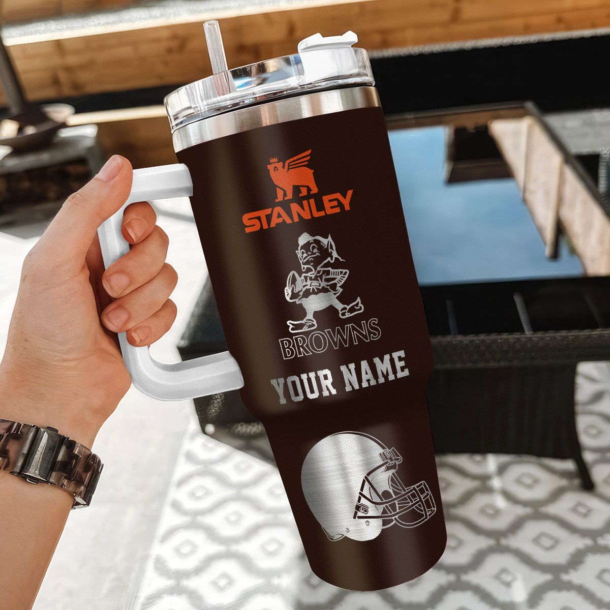 Stay refreshed in style with our Cleveland Browns tumbler. Features a sturdy handle and customizable name for the ultimate fan gift.
