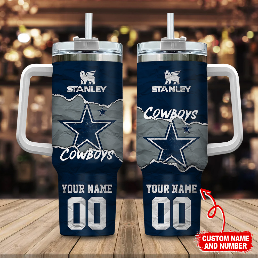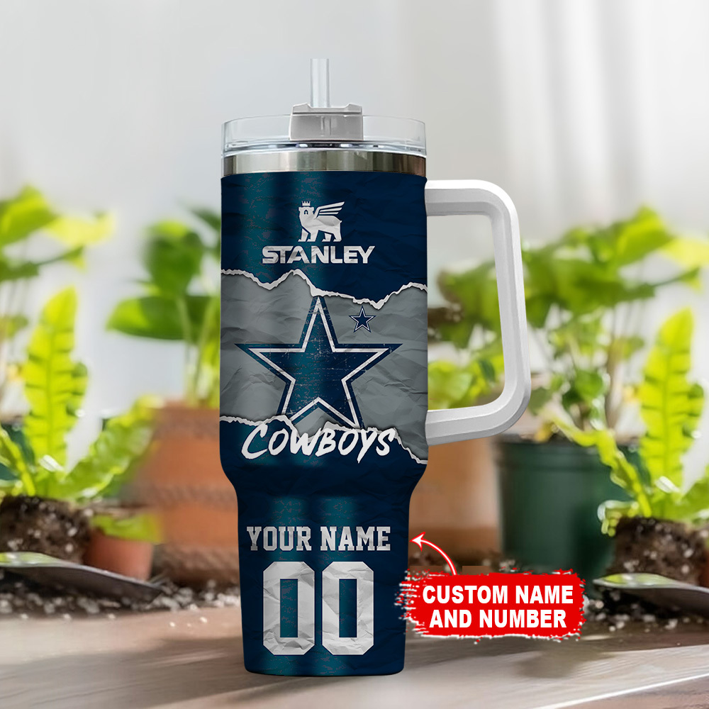 Show off your team pride with this customizable Cowboys tumbler. Perfect for keeping your drinks hot or cold, personalize it with your name and number.