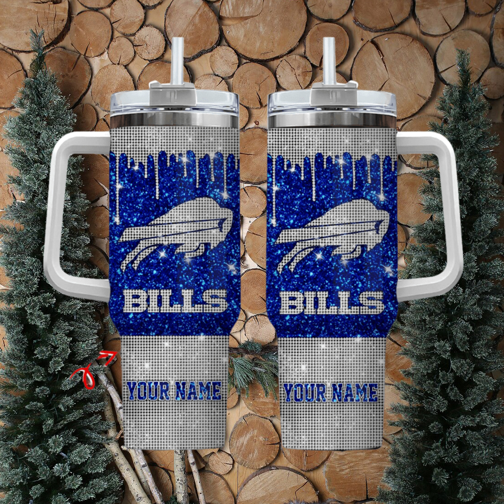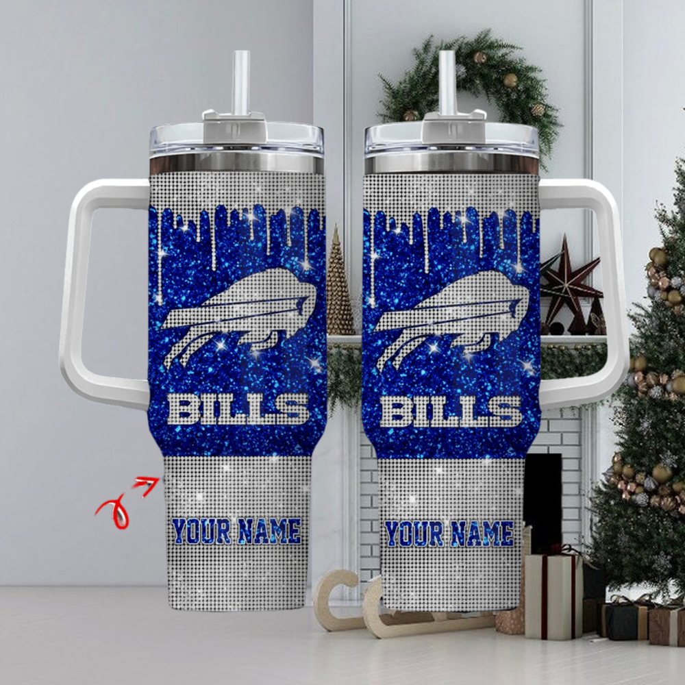 Stay hydrated in style with this personalized glitter tumbler. Perfect gift for sports fans, featuring a convenient handle and straw.