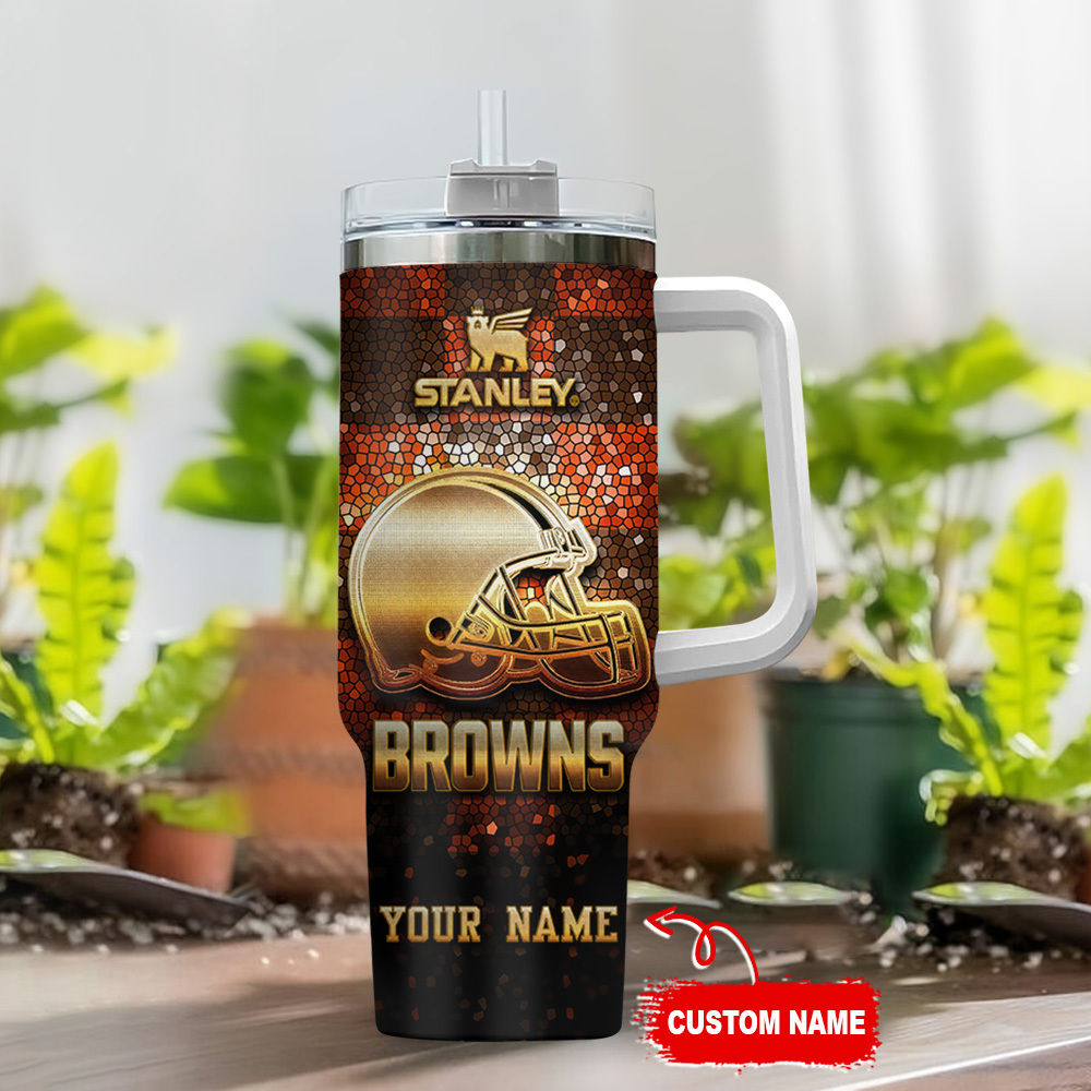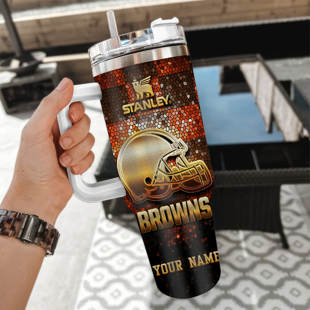 Show your team pride with this personalized Browns tumbler. Perfect for keeping drinks hot or cold. Add your name for a unique touch!
