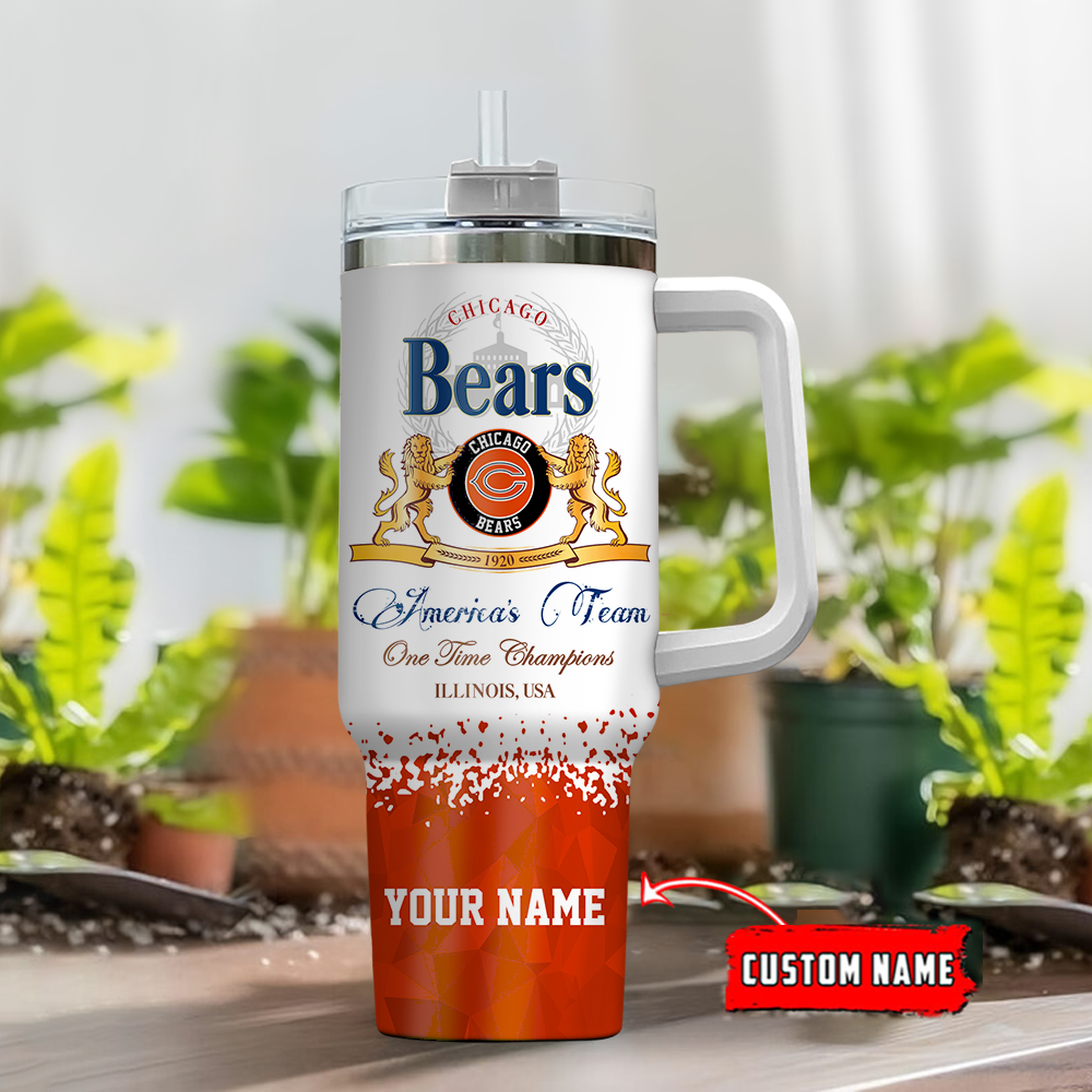 Show your team spirit with this customizable Chicago Bears tumbler. Personalize with your name for the ultimate fan experience.