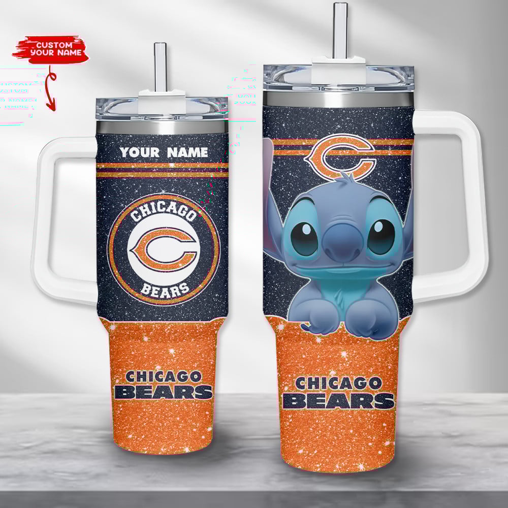 Show your team spirit with this personalized Chicago Bears tumbler featuring a cute character design. Perfect for keeping drinks hot or cold on the go!