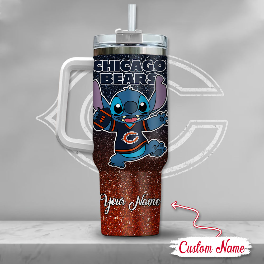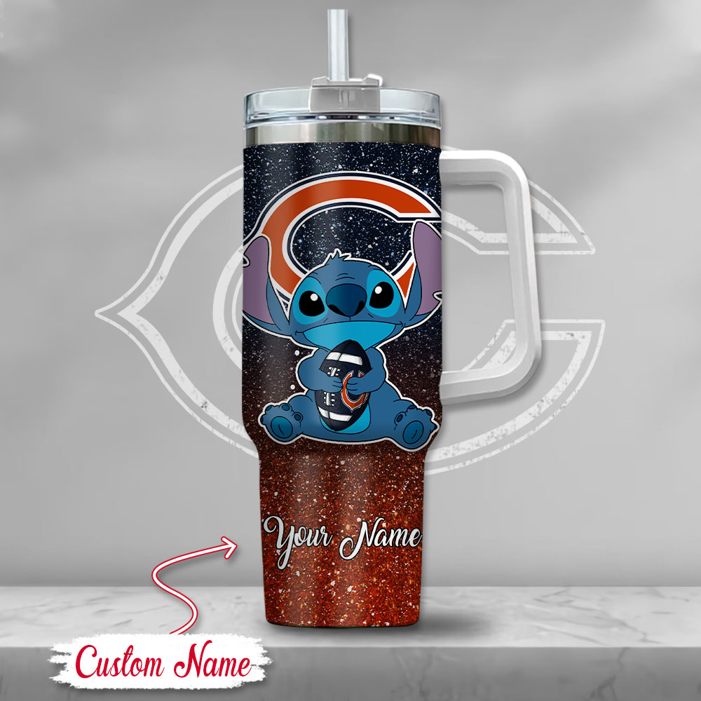 Show off your team spirit with this personalized Chicago Bears tumbler, featuring a cute character. Perfect for keeping drinks hot or cold on the go!