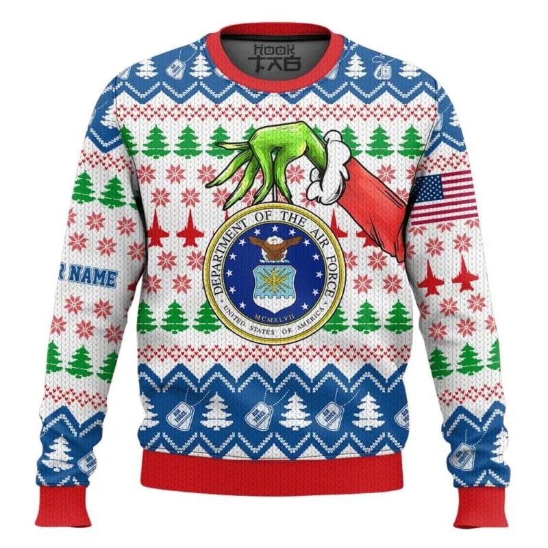 Custom Name Grinch x US Air Force Ugly Sweater, Grinch Holiday Sweater