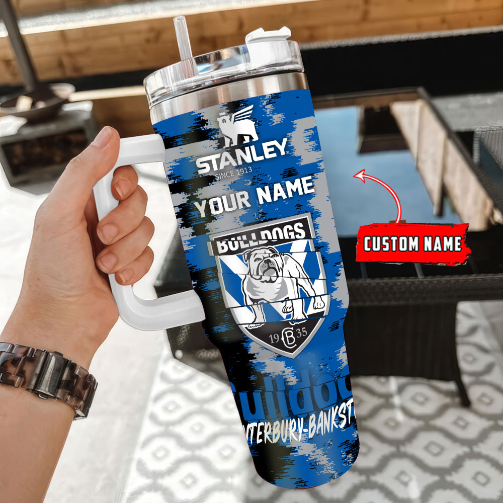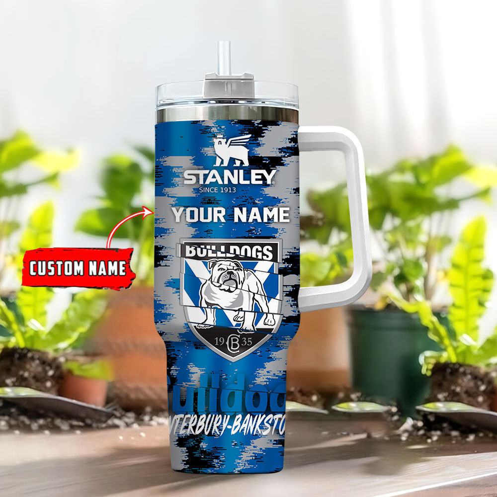 Show off your team spirit with this custom Bulldogs tumbler. Personalize it with your name for a unique touch. Perfect for hot or cold drinks.