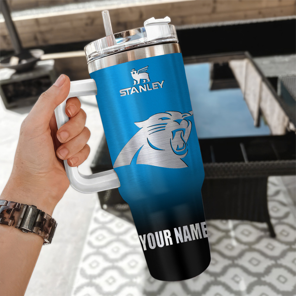 Stay refreshed with this custom blue panther tumbler. Features a sturdy handle, straw, and your name for a personal touch. Perfect for fans on the go!
