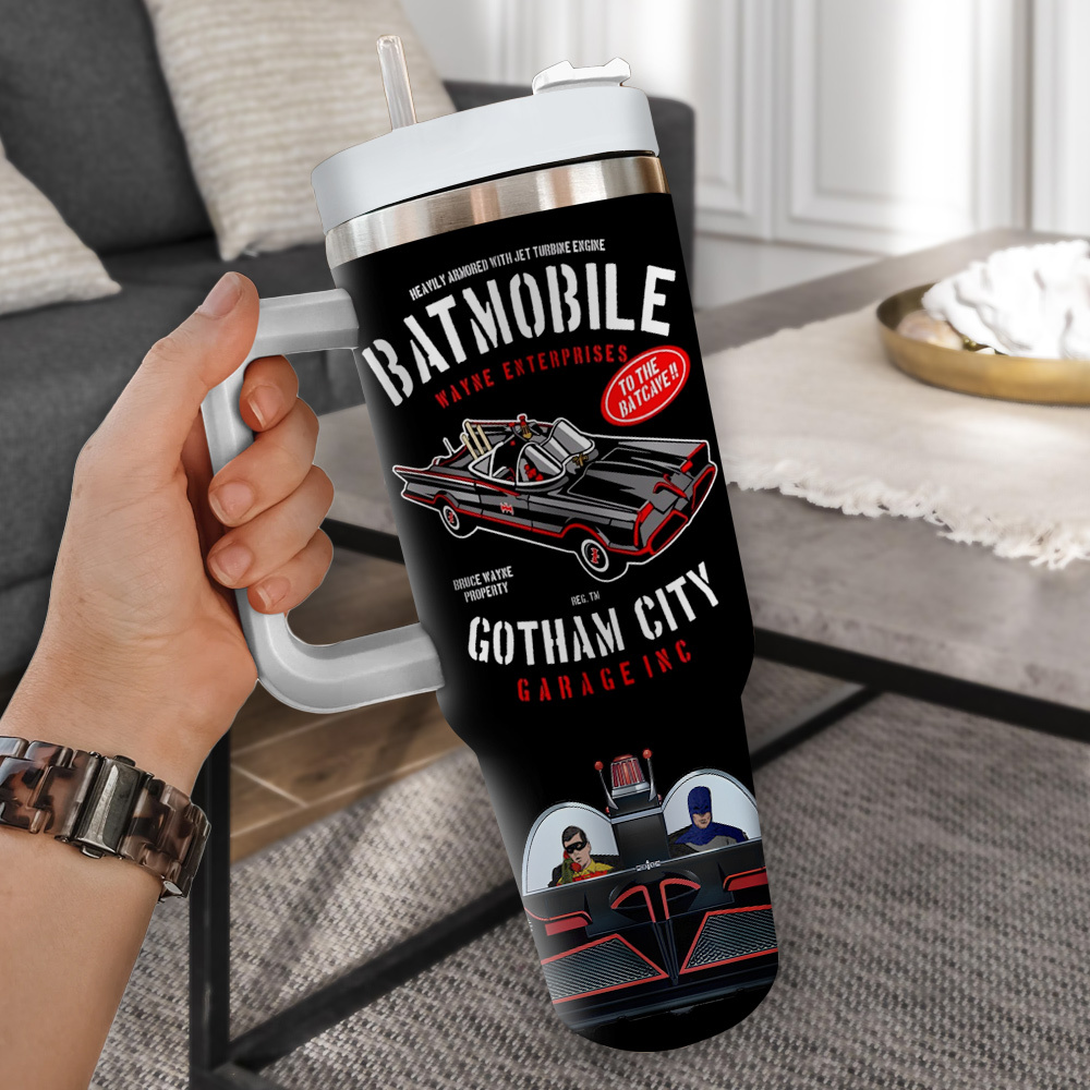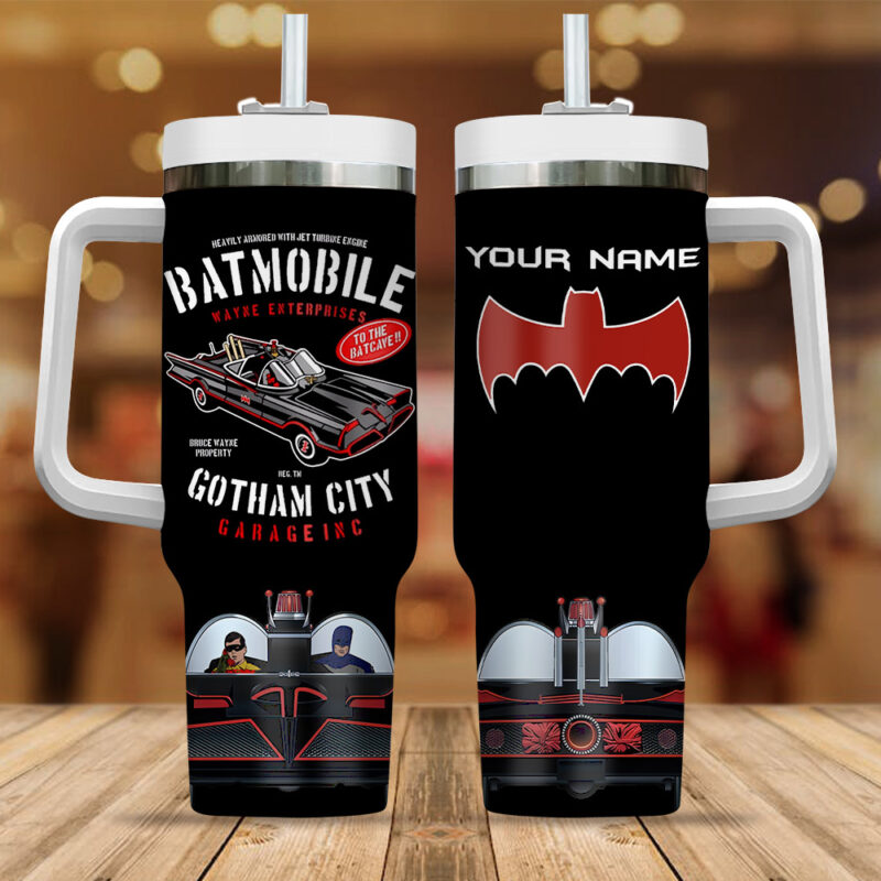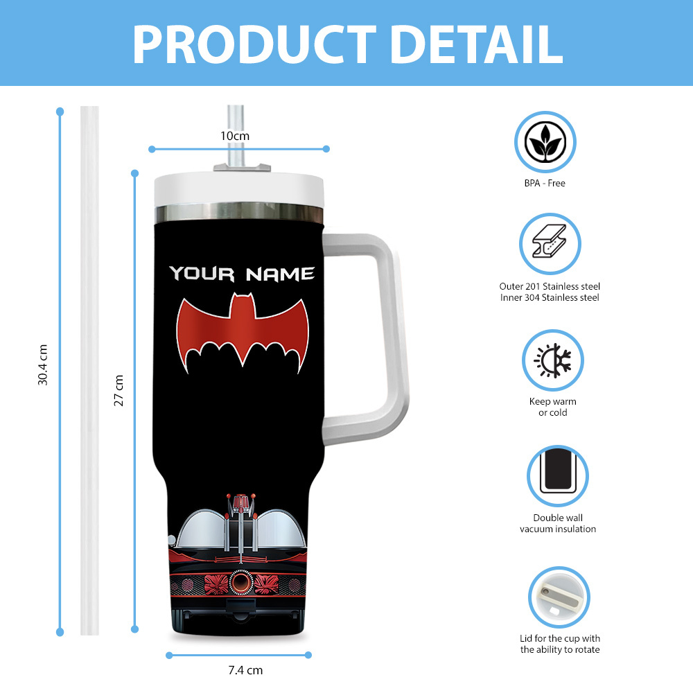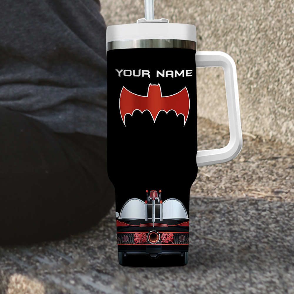Stay refreshed with this customizable Batmobile tumbler. Perfect for superhero fans, personalize with your name and enjoy your favorite beverages on the go.