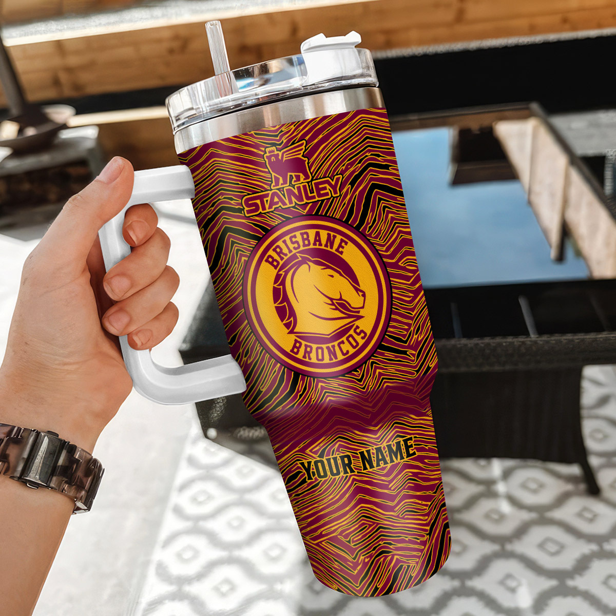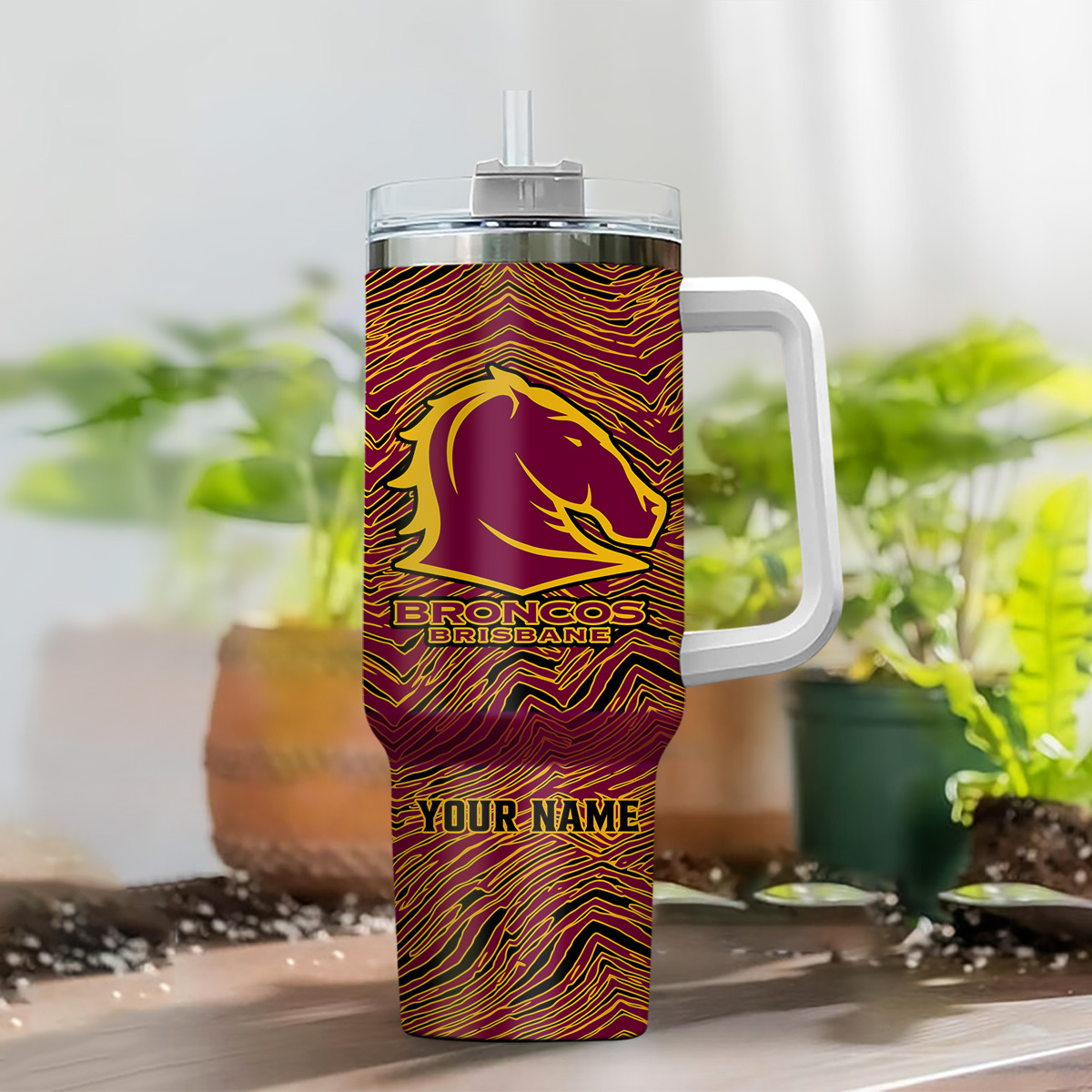 Show your team spirit with this personalized Brisbane Broncos tumbler. Durable, stylish, and perfect for keeping your drinks at the right temperature.