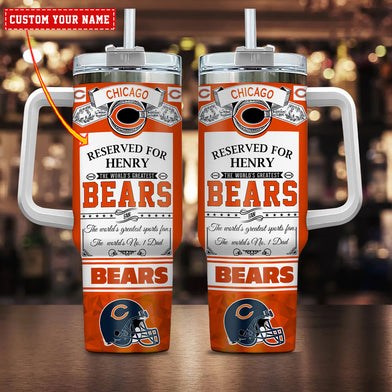 Show off your team pride with this customizable Chicago Bears tumbler. Perfect for game days or everyday use, add your name for a personal touch!