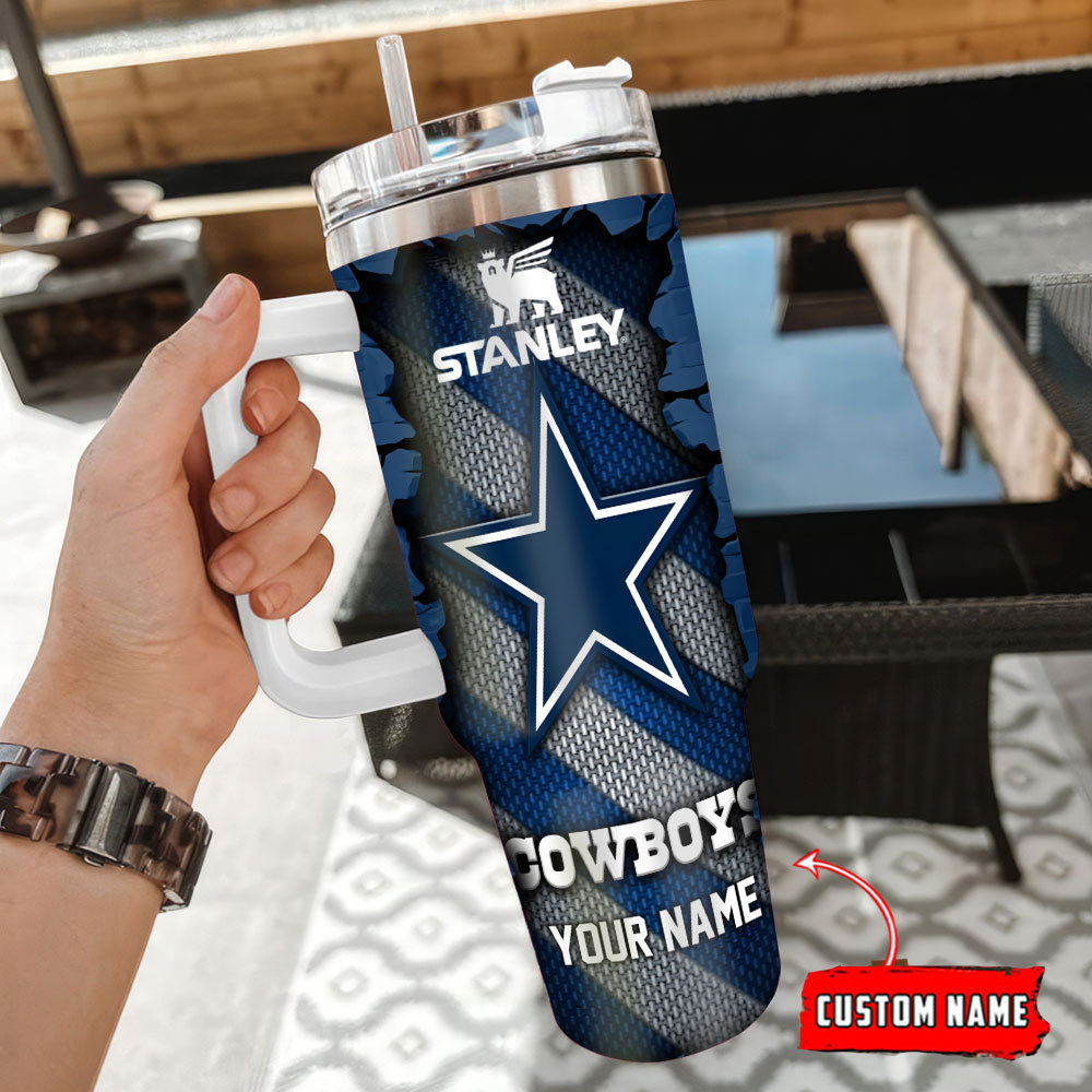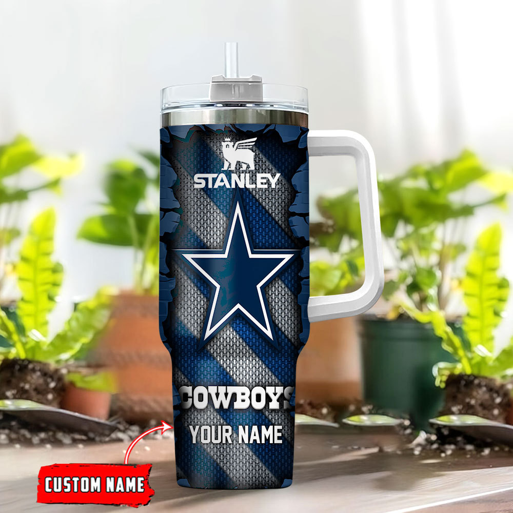 Show your team spirit with this customizable cowboy tumbler. Perfect for keeping drinks hot or cold on the go. Personalize with your name.