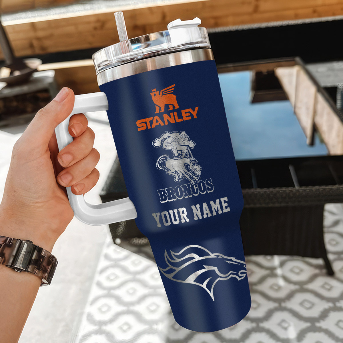Show your team pride with this customizable Denver Broncos tumbler. Perfect for game days or everyday use, personalize it with your name!