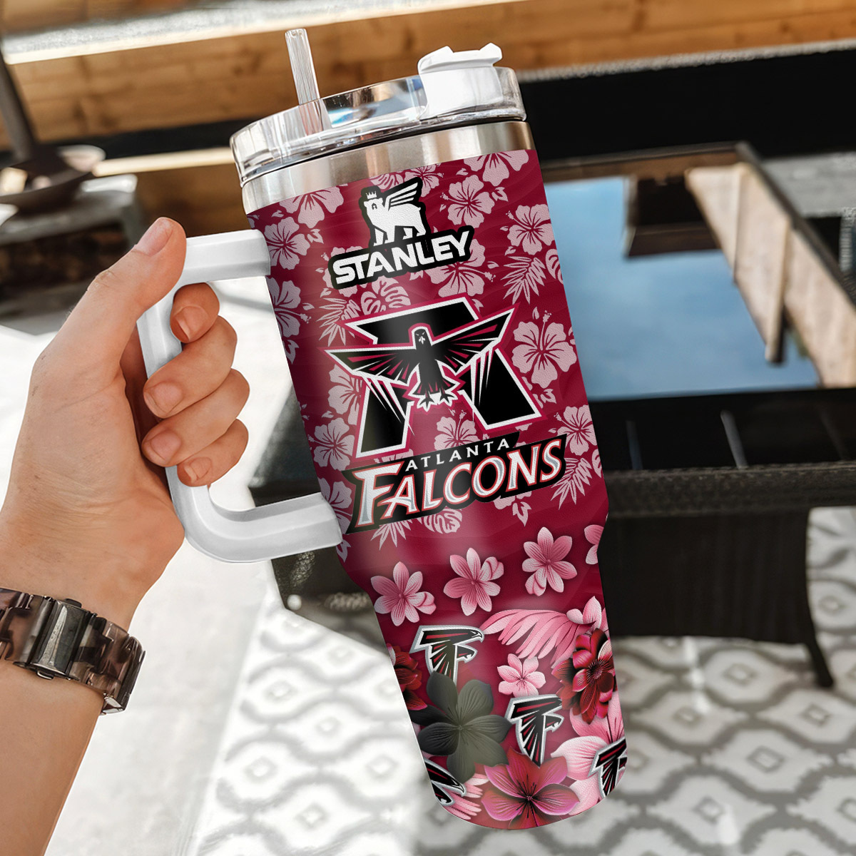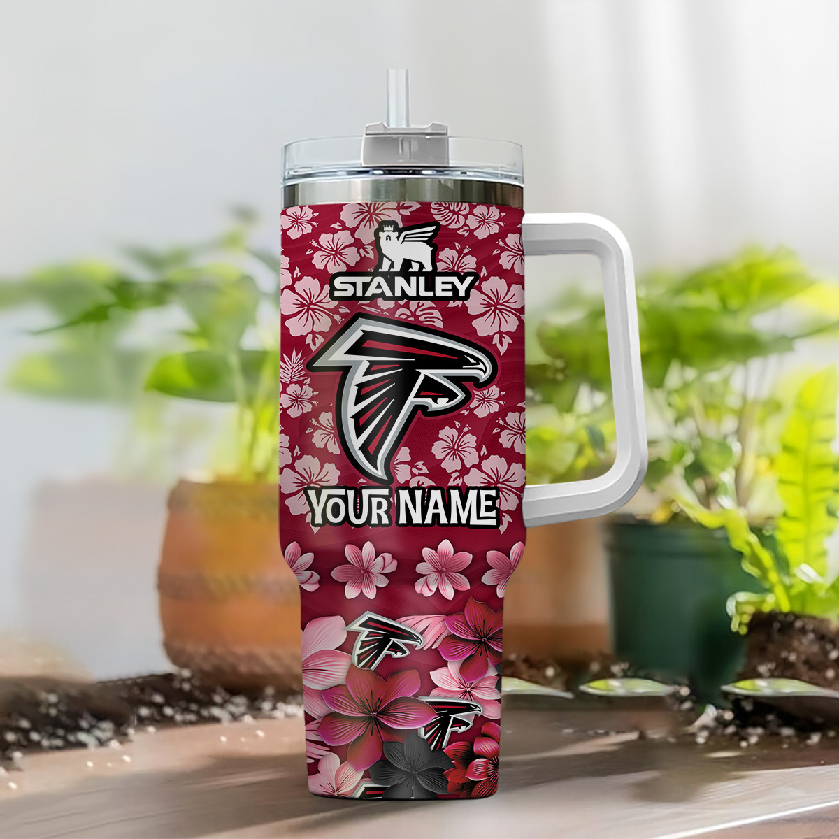Stay hydrated in style with this customizable floral tumbler. Featuring a handle and straw, it’s perfect for sports fans on the go.