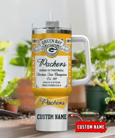Show your team spirit with this customizable Green Bay Packers tumbler. Add your name for a personal touch. Ideal for game days and everyday use.