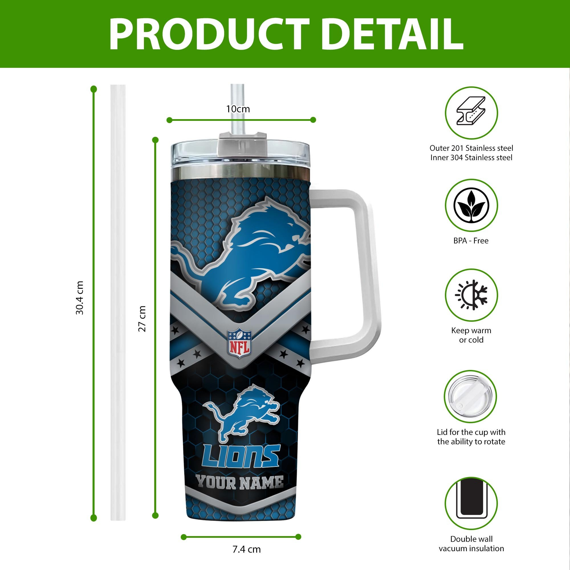 Show off your team pride with this customizable NFL tumbler. Featuring a sturdy handle and personalized name option, it’s perfect for any fan.
