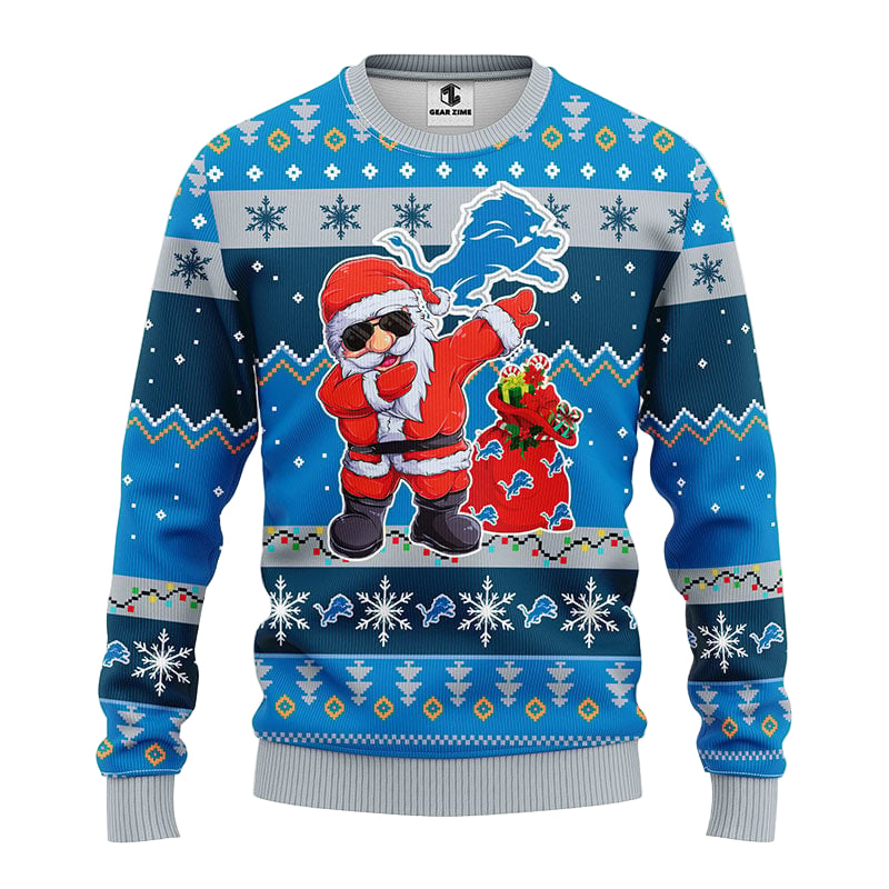 Detroit Lions Dabbing Santa Claus Ugly Christmas Sweater