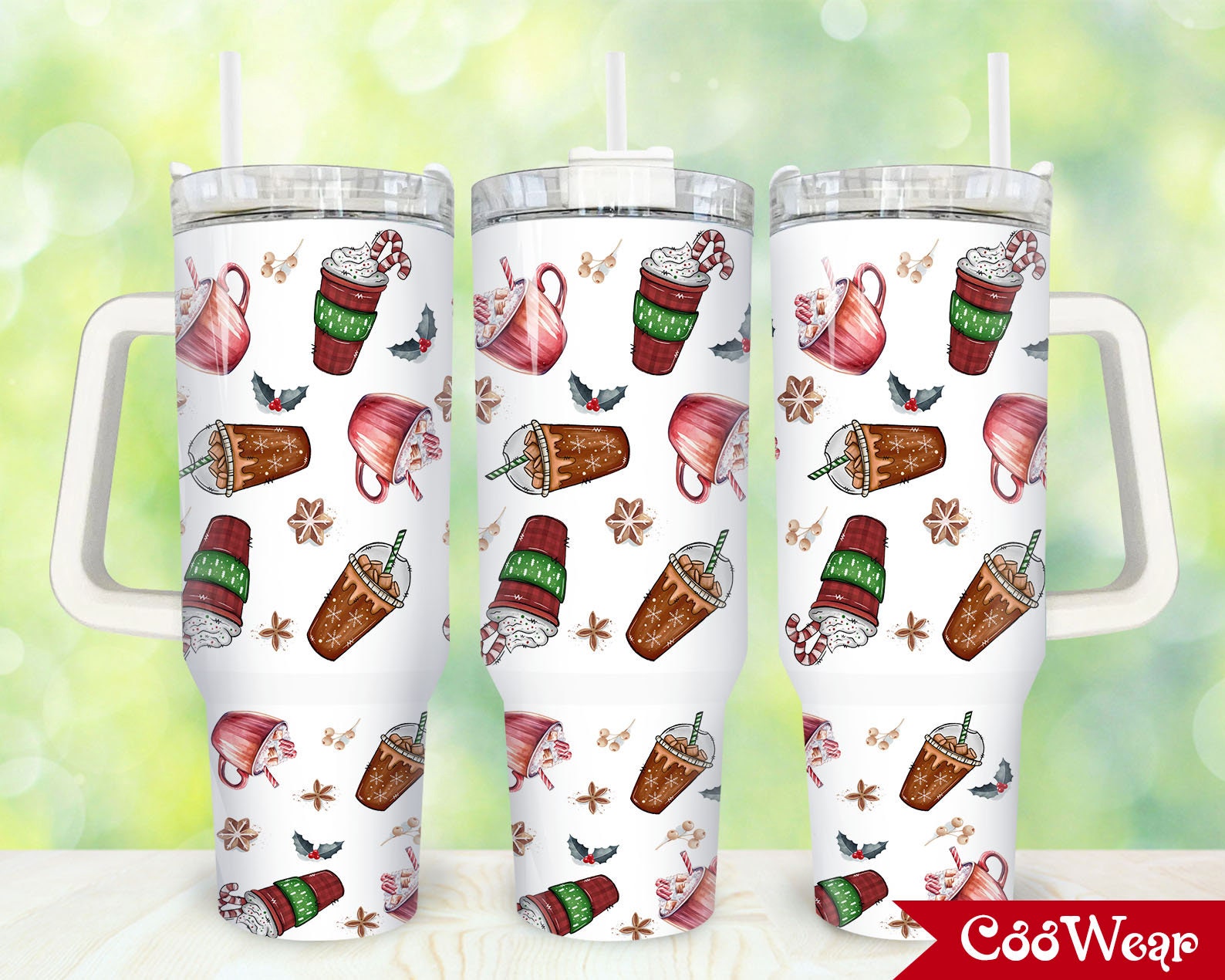 Celebrate the season with this festive holiday tumbler! Perfect for hot or cold drinks, featuring a handle, lid, and straw for easy sipping on-the-go.