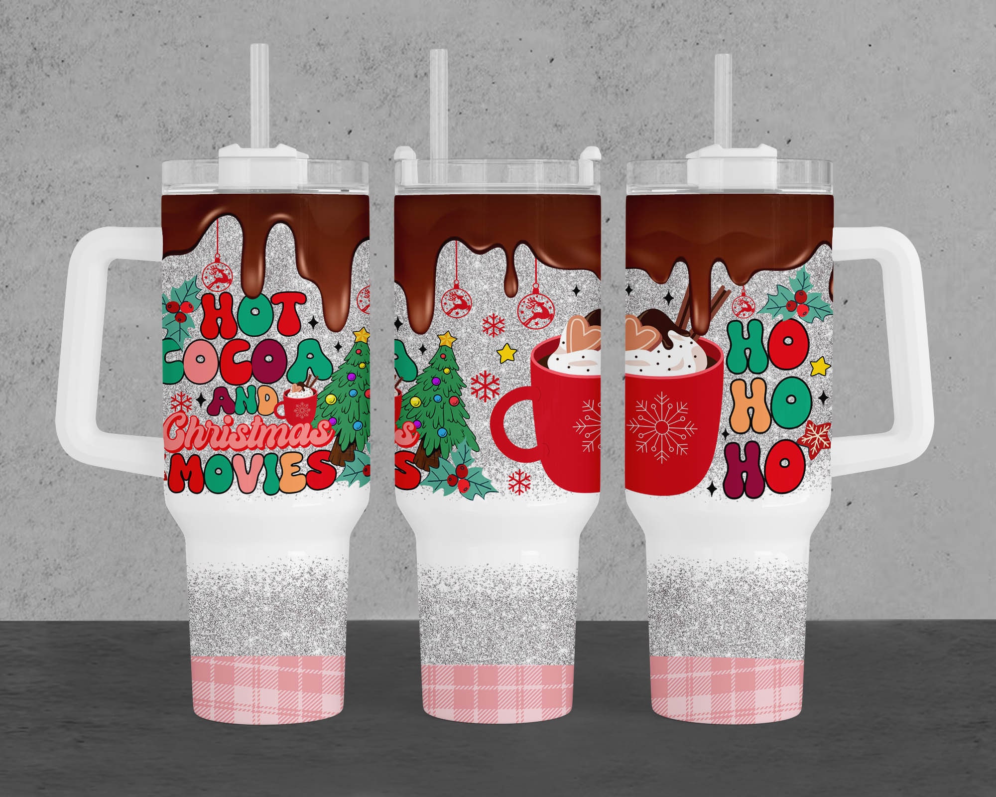 Cozy up with this festive tumbler featuring holiday designs. Perfect for enjoying hot cocoa and Christmas movies. Ideal gift for the season!