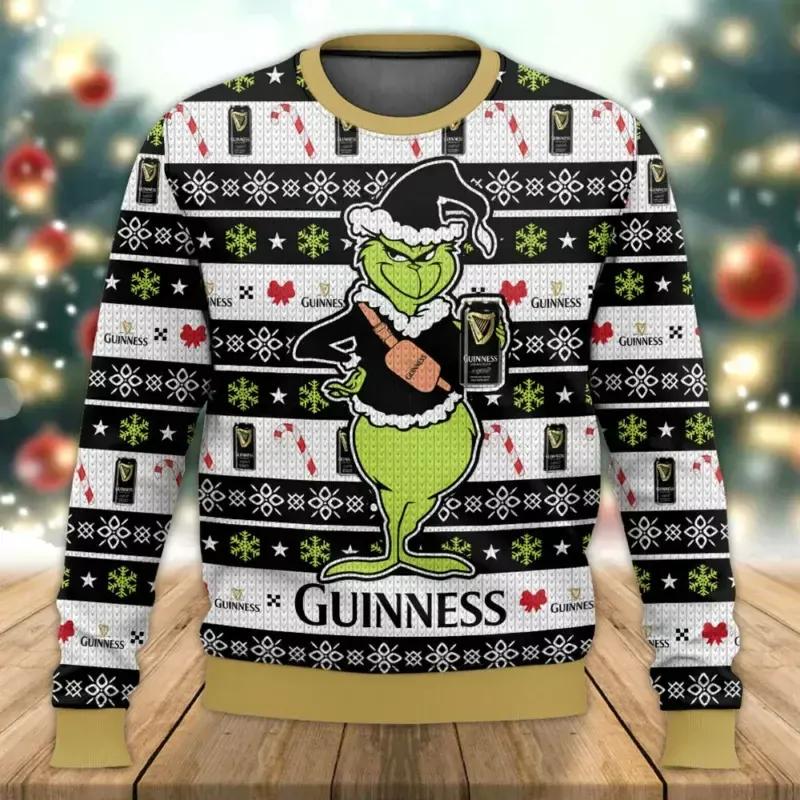 Grinch Guinness Ugly Christmas Sweater, Grinch Holiday Sweater – Gowgowstore.com