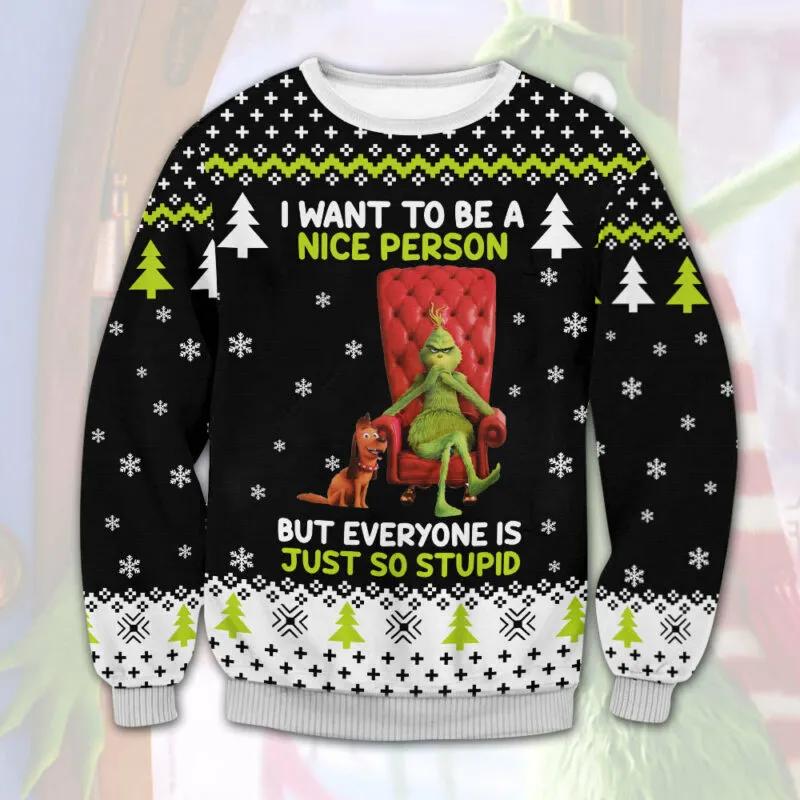 Grinch I Want To Be A Nice Person But Everyone Is Just So Stupid Ugly Sweater, Grinch Holiday Sweater
