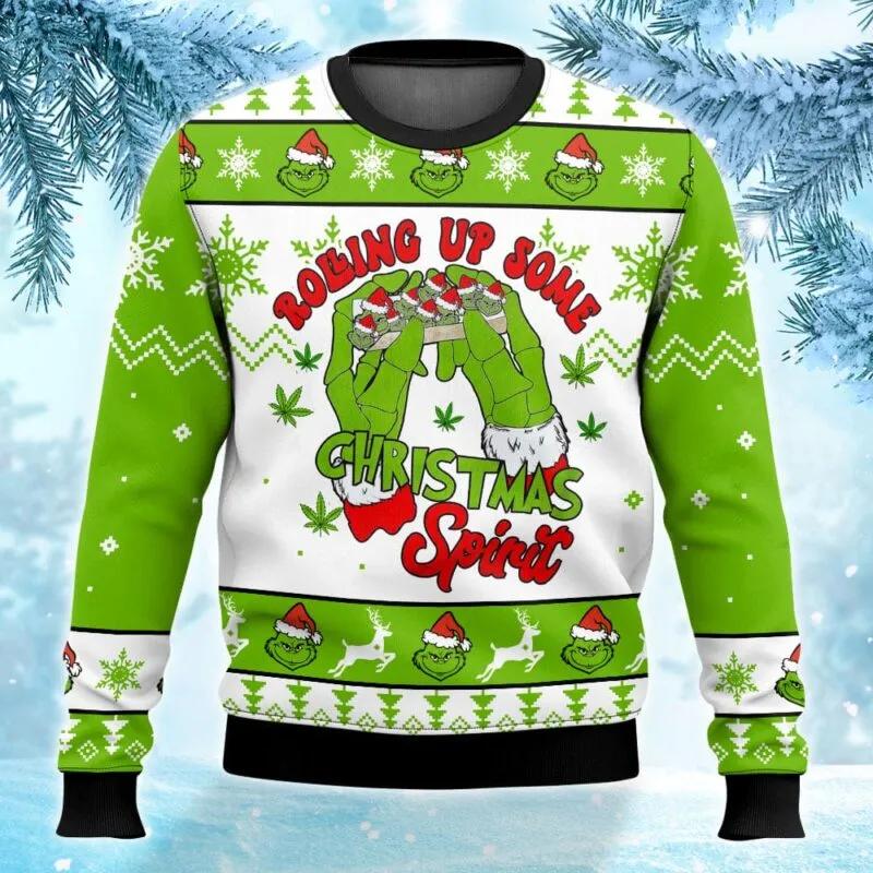 Grinch Rolling Up Ugly Sweater, Grinch Holiday Sweater