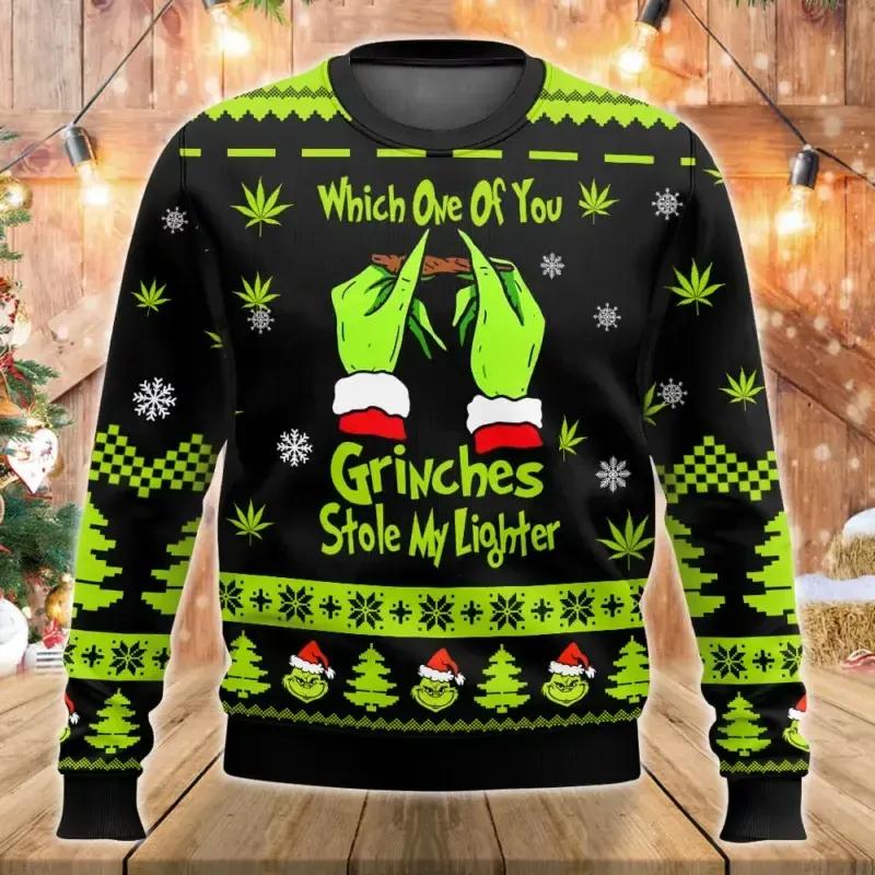Grinch Weed Which One Of You Grinches Stolen My Lighter Ugly Christmas Sweater, Grinch Holiday Sweater – Gowgowstore.com