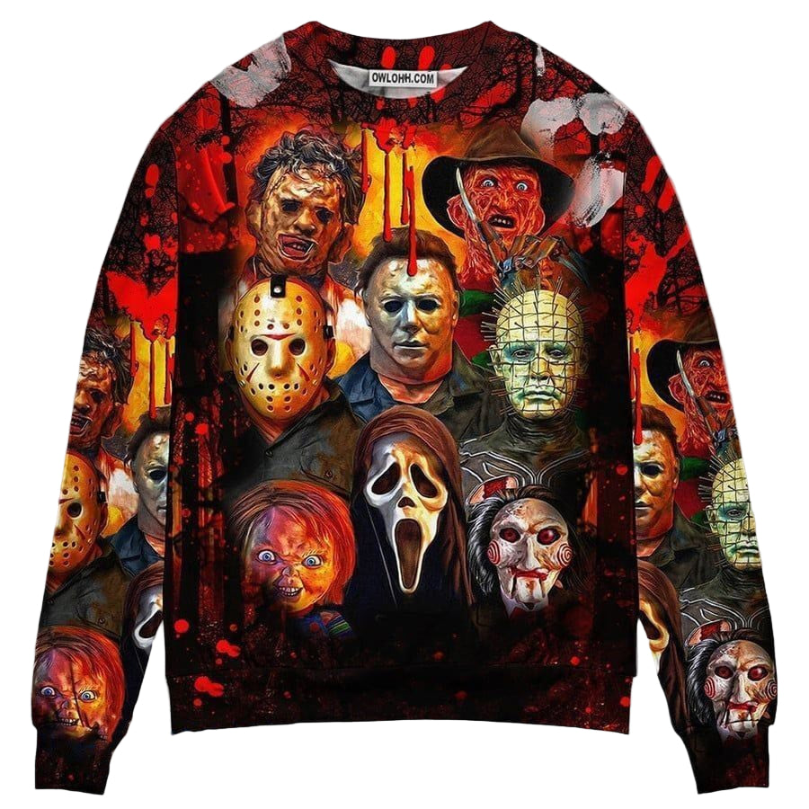 Halloween Horror Movie Characters Blood Scary Gift For Lover Ugly Christmas Sweater