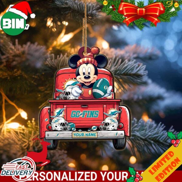 Miami Dolphins Mickey Mouse Ornament Personalized Your Name Sport Home Decor – Gowgowstore.com