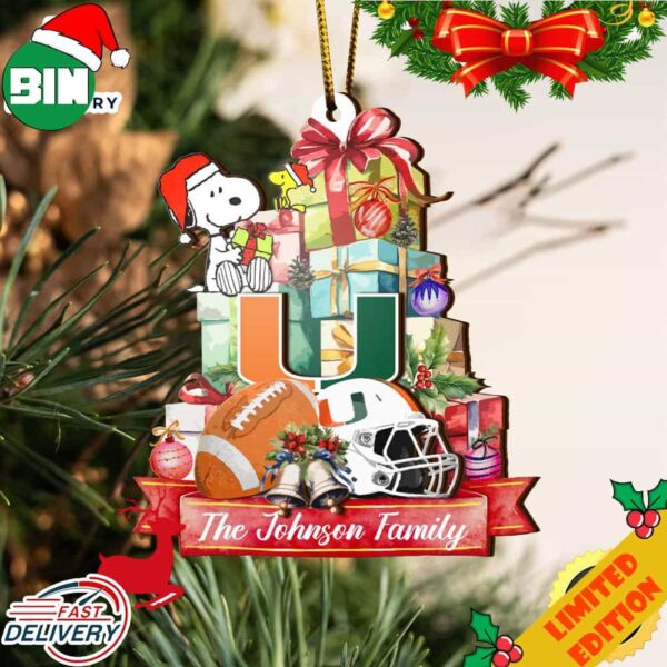 Miami Hurricanes And Snoopy Christmas NCAA Ornament Custom Your Family Name – Gowgowstore.com