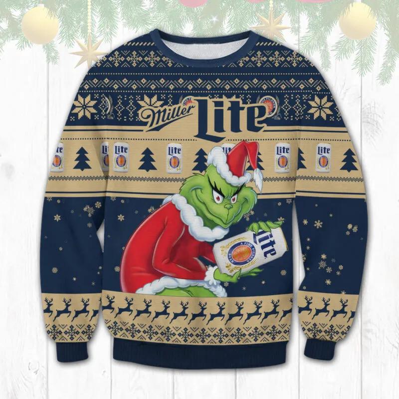 Miller Lite Grinch Ugly Sweater, Grinch Holiday Sweater – Gowgowstore.com