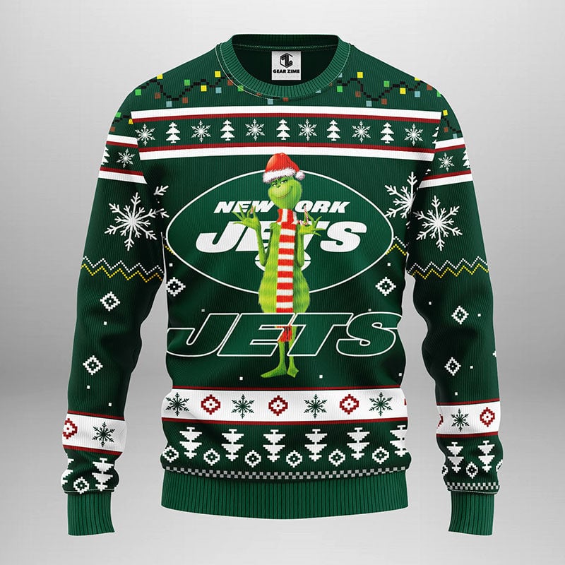New York Jets Funny Grinch Ugly Christmas Sweater