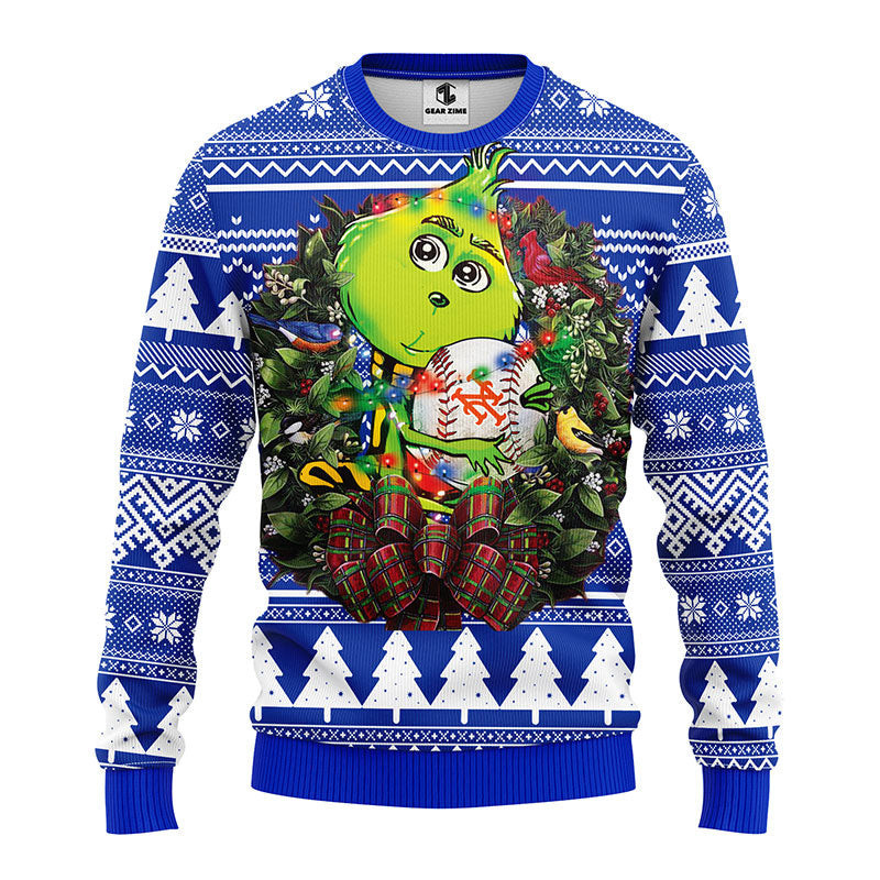 New York Mets Grinch Hug Ugly Christmas Sweater