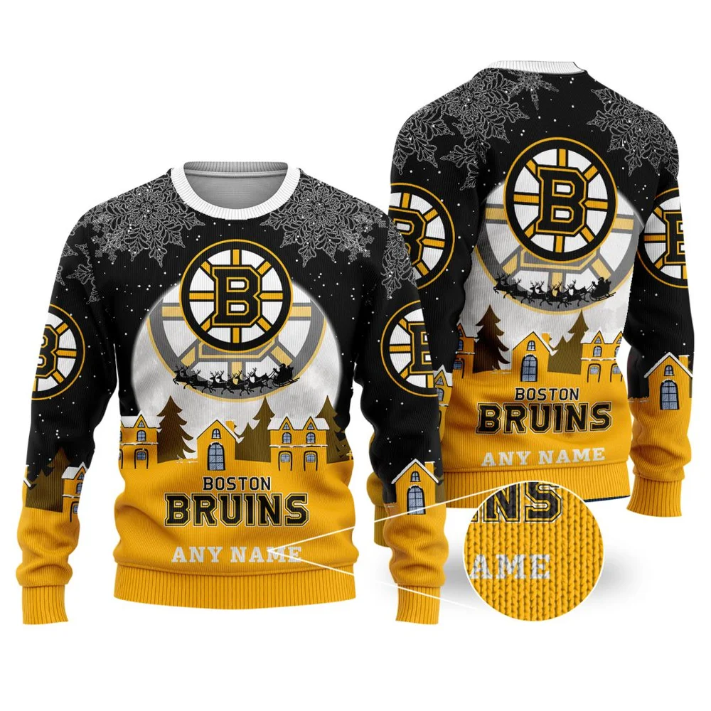 NHL Boston Bruins Personalized Name Christmas Ugly Sweater Design ST2306