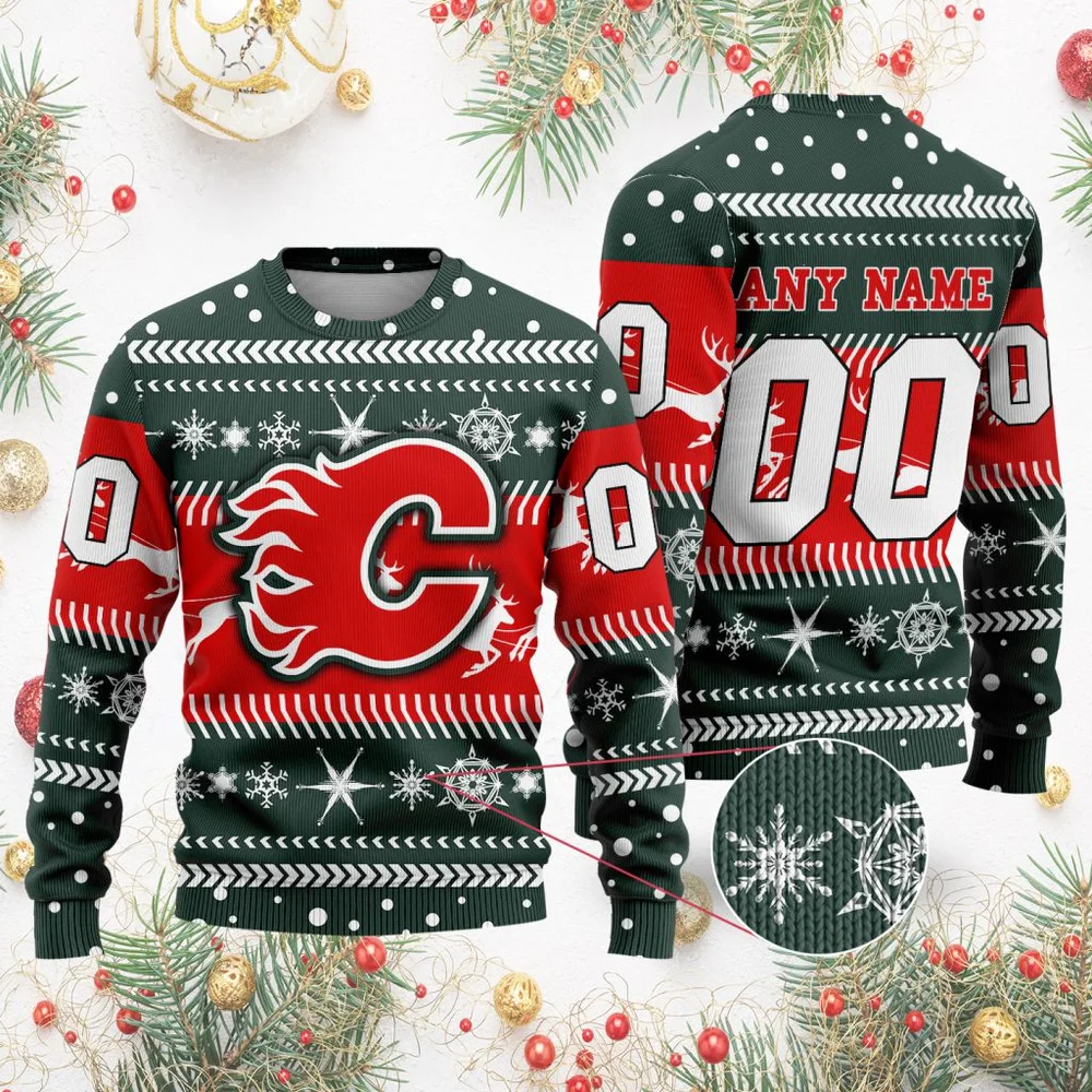 NHL Calgary Flames | Personalized Name & Number Unisex Sweater For Christmas Season