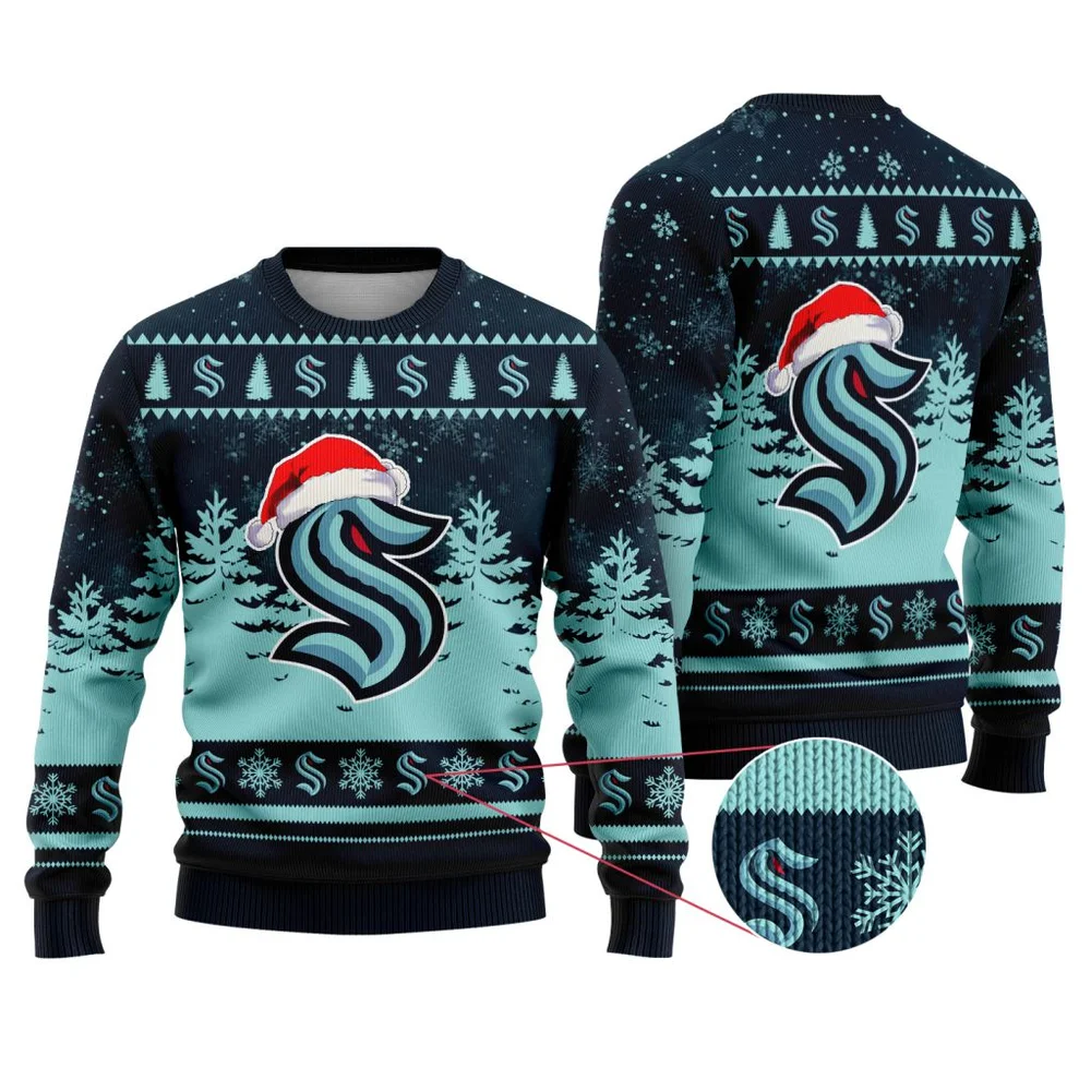 NHL Seattle Kraken Personalized Name Christmas Design Ugly Sweater ST2301