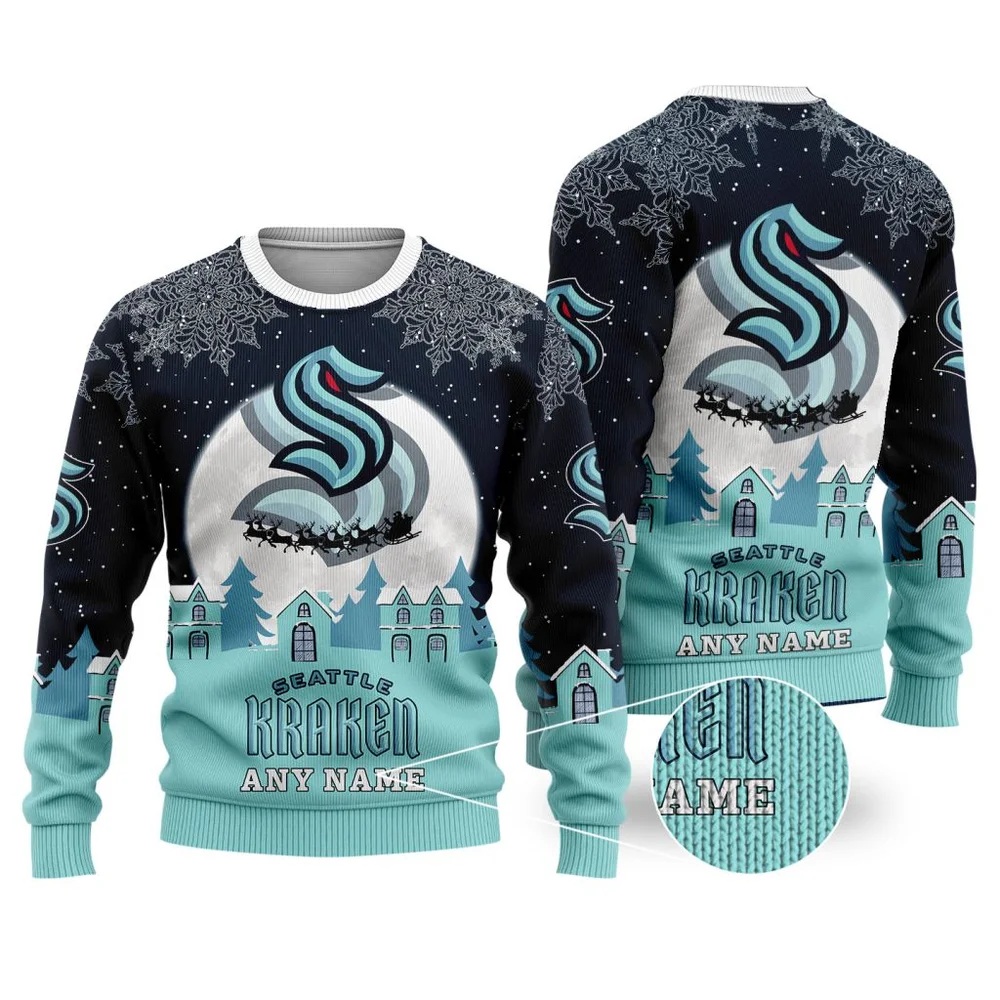 NHL Seattle Kraken Personalized Name Christmas Ugly Sweater Design ST2306