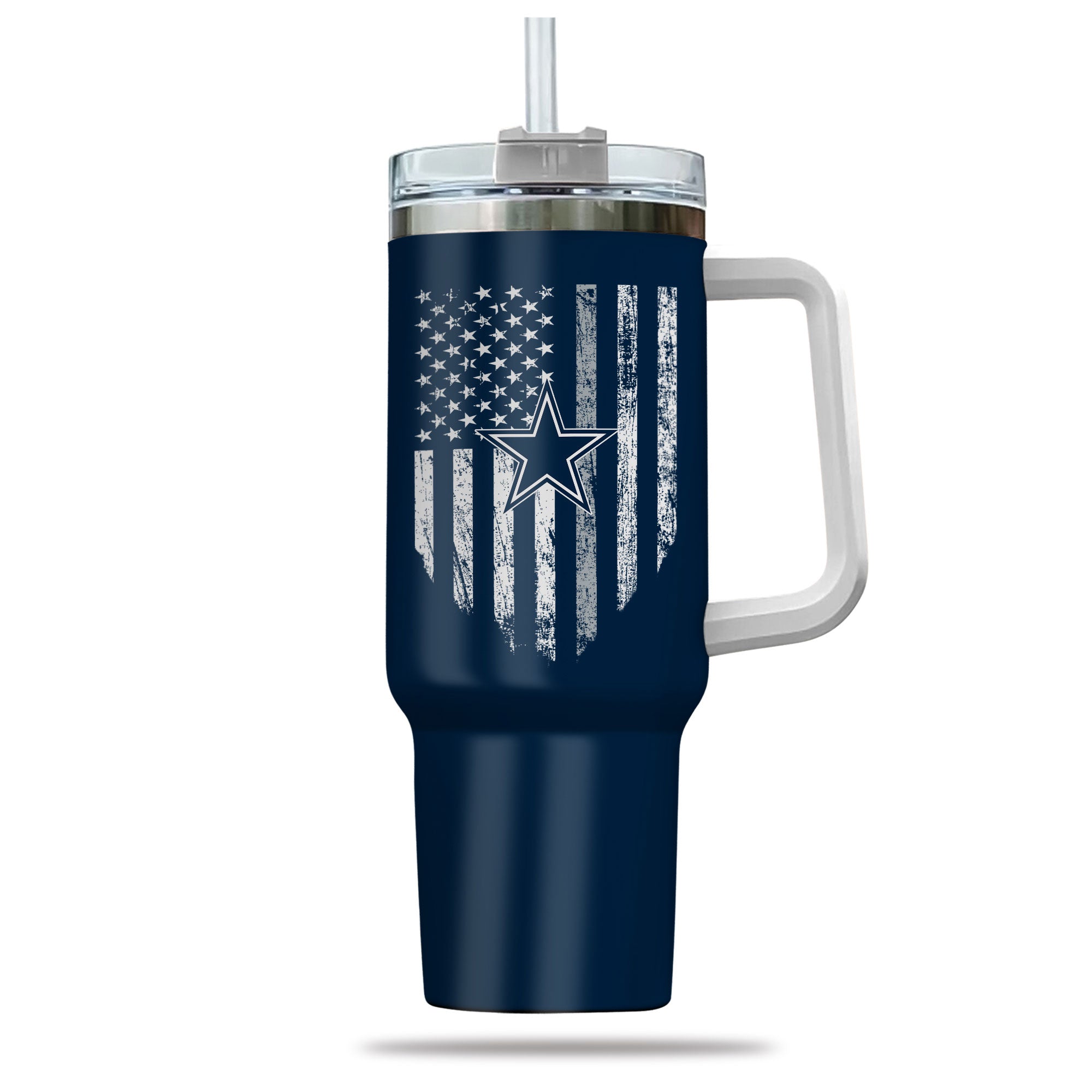 Show your cowboy pride with this durable, insulated tumbler. Perfect for keeping drinks hot or cold, featuring a unique design for true fans.