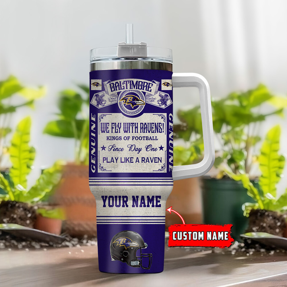 Show your team spirit with this customizable Baltimore football tumbler. Perfect for keeping drinks hot or cold, personalized with your name.