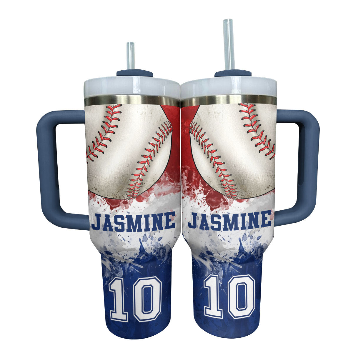 Stay refreshed with this stylish baseball-themed tumbler. Personalize it with your name and number for a unique touch. Perfect for sports enthusiasts!