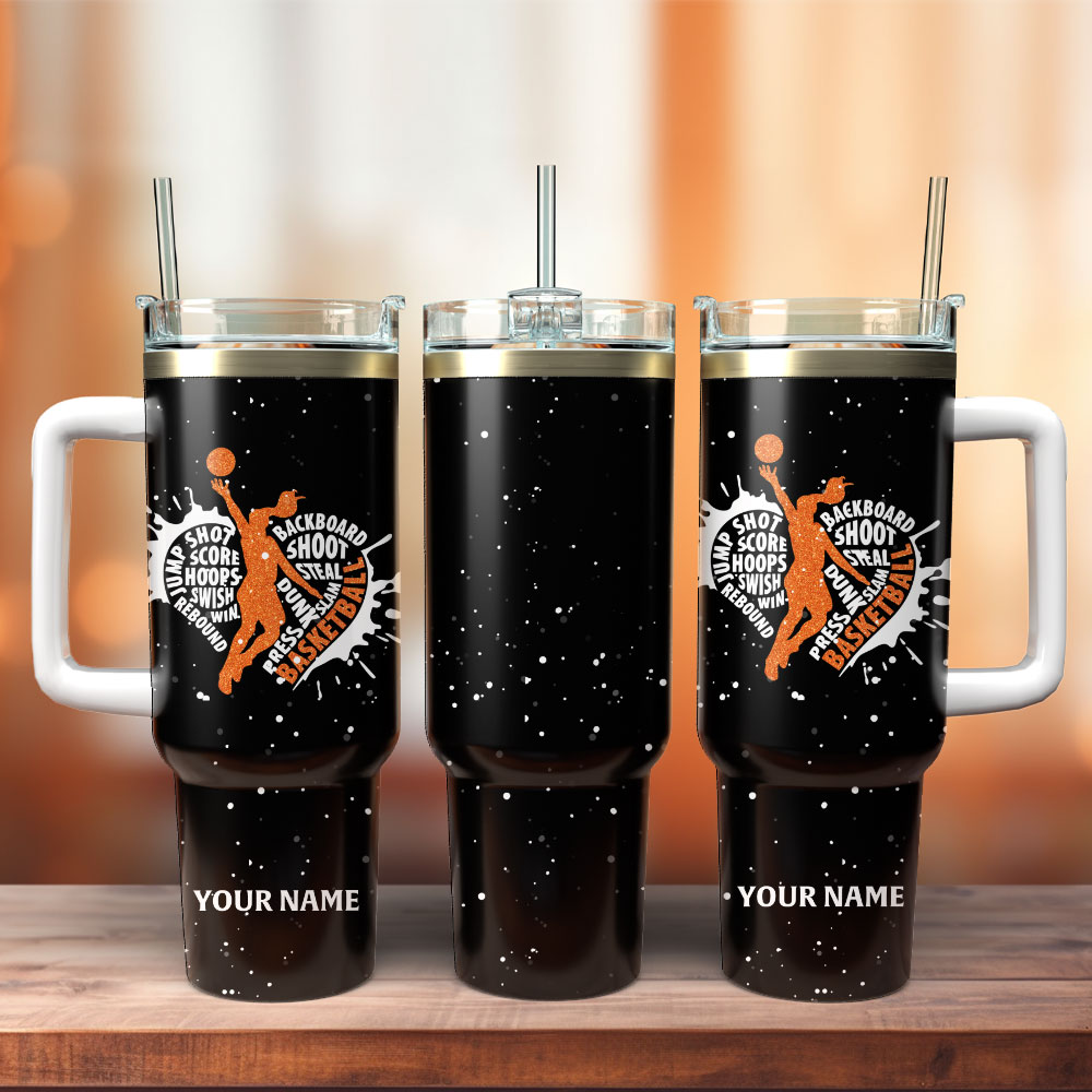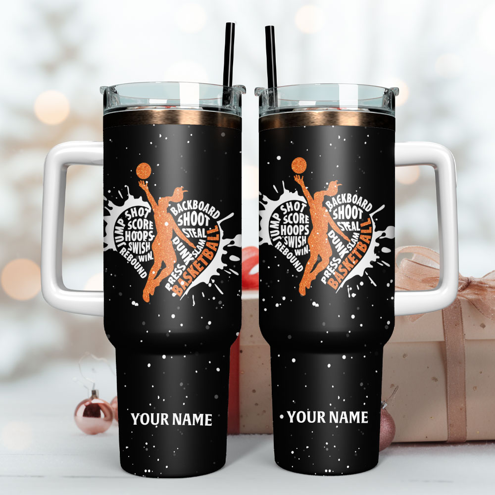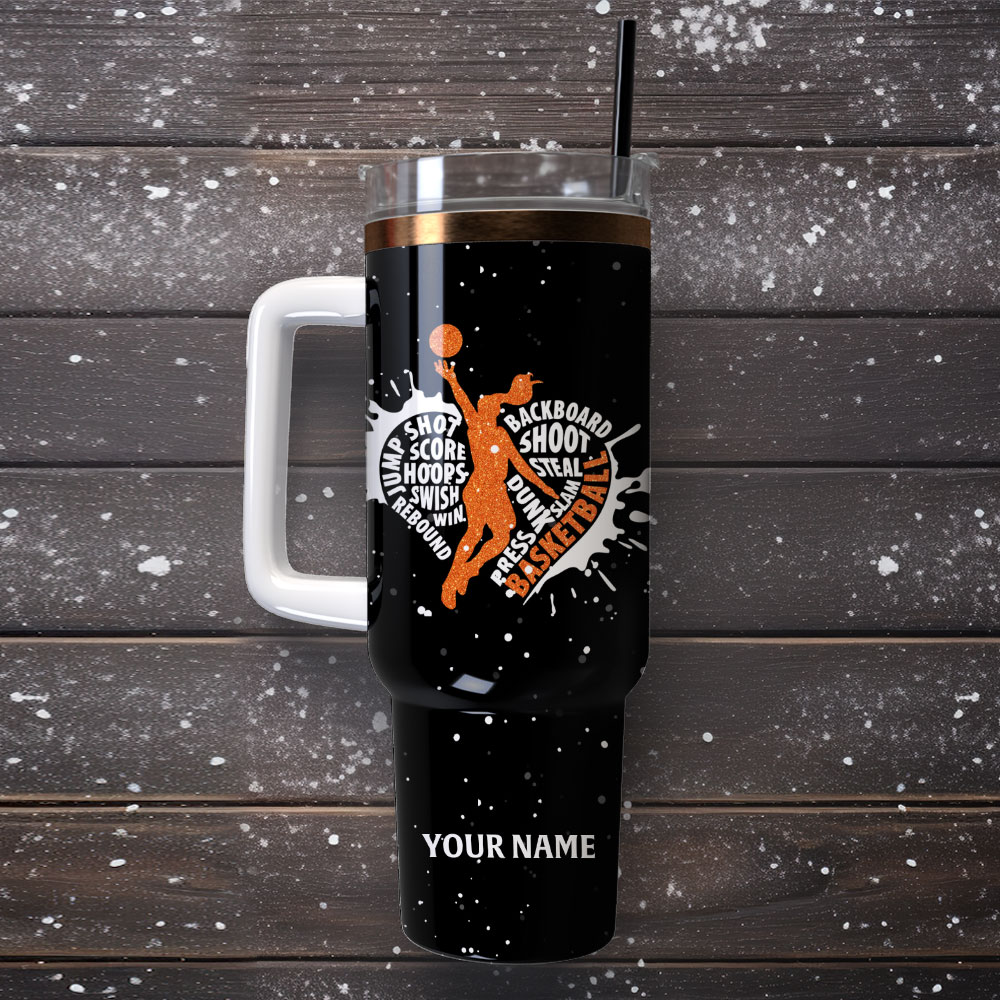 Stay hydrated and show off your love for basketball with this personalized travel mug. Featuring a custom name and vibrant sports design, it’s perfect for on-the-go athletes.