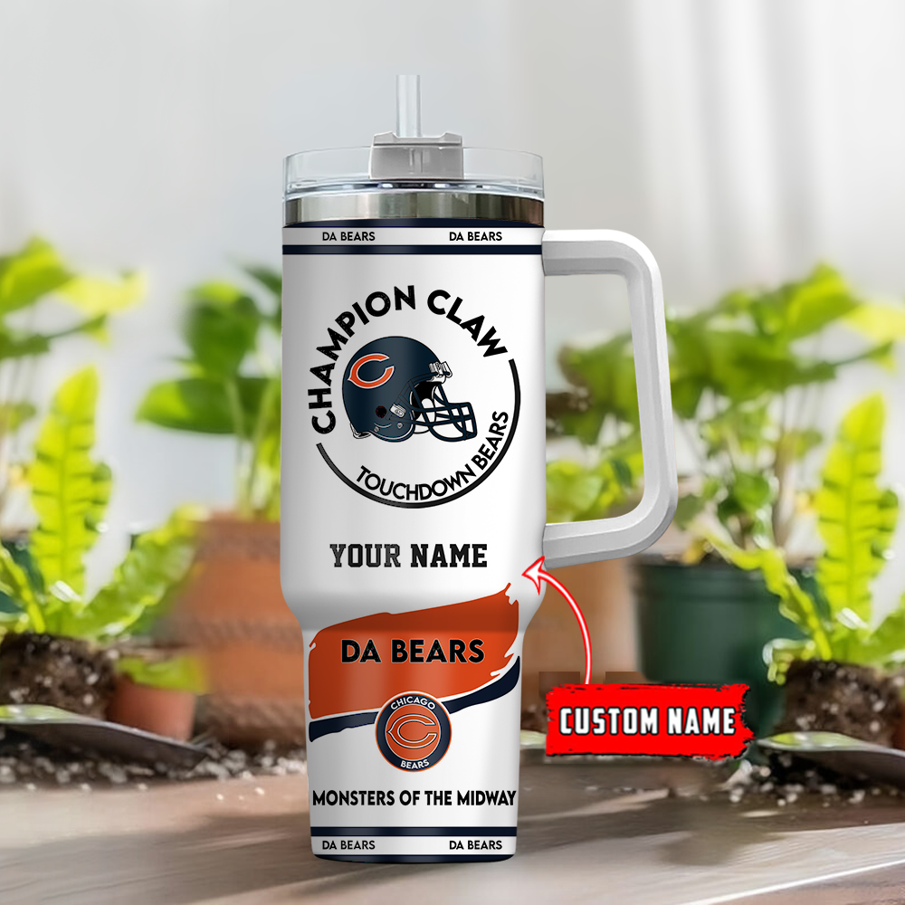 Showcase your love for the Chicago Bears with this personalized tumbler. Add your name and enjoy your drinks in style. Perfect for any Bears fan!